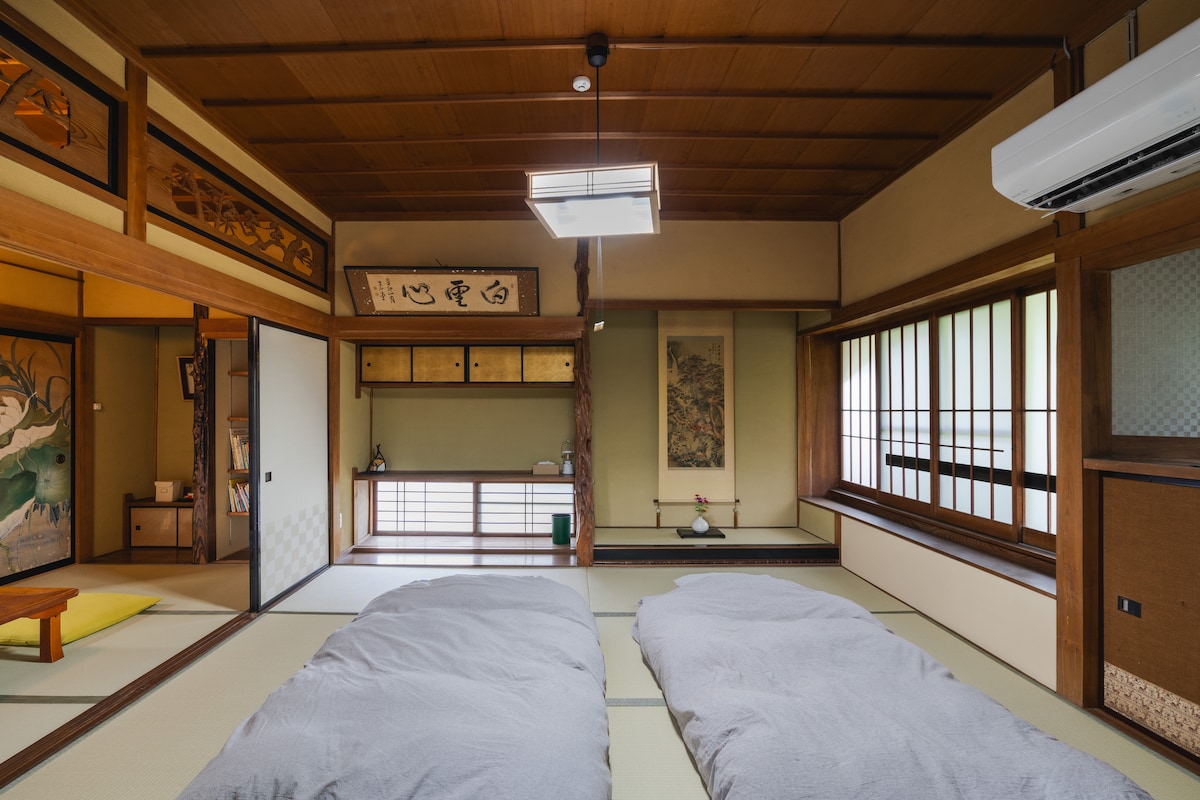 Užtruksite 3 valandas nuo Kioto, Osakos ir Naros. Galite pamatyti visiškai kitą Japonijos miesto pusės aspektą. Žalieji kalnai, švari upė, Firefly, daug žvaigždžių, ryžių laukas, daržovių laukas. Namas yra graži gamta. Taip pat turime gerų kaimynų. Pamatysite tikrąjį Japonijos kaimą, kuris nėra parašytas keliautojo vadove. Kambarį supa mano tėvo ir mano meno kūriniai. Didžiulė virtuvė, svetainė ir sodas yra jūsų. Mėgaukitės ir atsipalaiduokite jaukiame name.