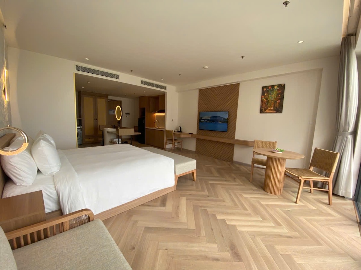 Šiame prabangiame bute yra atskiras miegamasis ir visa virtuvė, vos už 500 m nuo My Khe paplūdimio, kuri yra puiki vieta jūsų išvykai. Butas yra mažos, mažos 3 lygių vilos dalis. Savo unikalaus žavesio vietoje lifto rasite laiptus — mažą detalę, dėl kurios vila atrodo dar jaukesnė ir svetingesnė. Su šūkiu „May Home yra ten, kur yra širdis“, mūsų komanda visada jausitės šiltai laukiami, o viešnagė bus patogi ir nepamirštama.