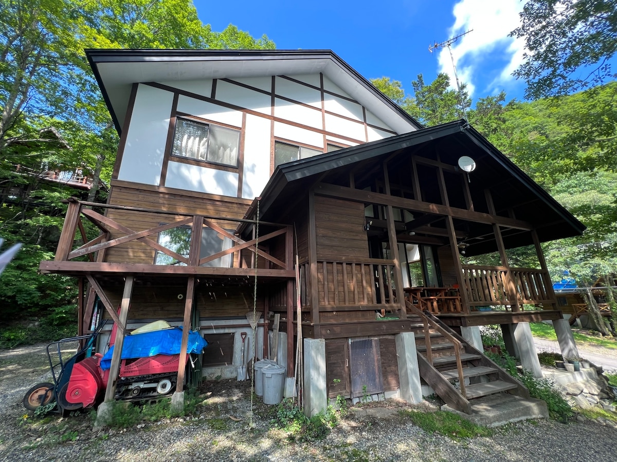 Graži rąstinė trobelė yra už 15 min. kelio pėsčiomis / 4 min. kelio automobiliu nuo Tsugaike kogen slidinėjimo zonos. Namuose yra penki atskiri miegamieji, kiliminė ir medinė grindų danga visame name ir šildymas - viskas, ko reikia, kad būtų šilta ir jauku mėgaujantis žiema. Vieta yra tikrai rami ir rami, apsupta miško. Yra vieta pasistatyti automobilį. Įskaičiuoti pusryčiai.