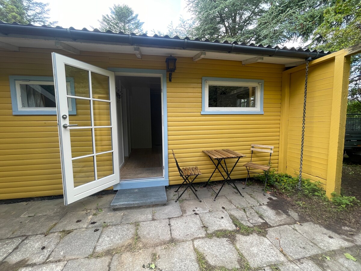 Small wooden cottage located in a big parklike and lush garden, private and separate from the main house, only a few minutes to a large forest, lovely beaches and a charming town with shops, cafees and restaurants, and close to the train. It has one main room with two beds put together, a separate kitchen for simple cooking and a bathroom. The terasse has a roof and is surrounded by flowers, trees and bushes. Suited for a romantic getaway.