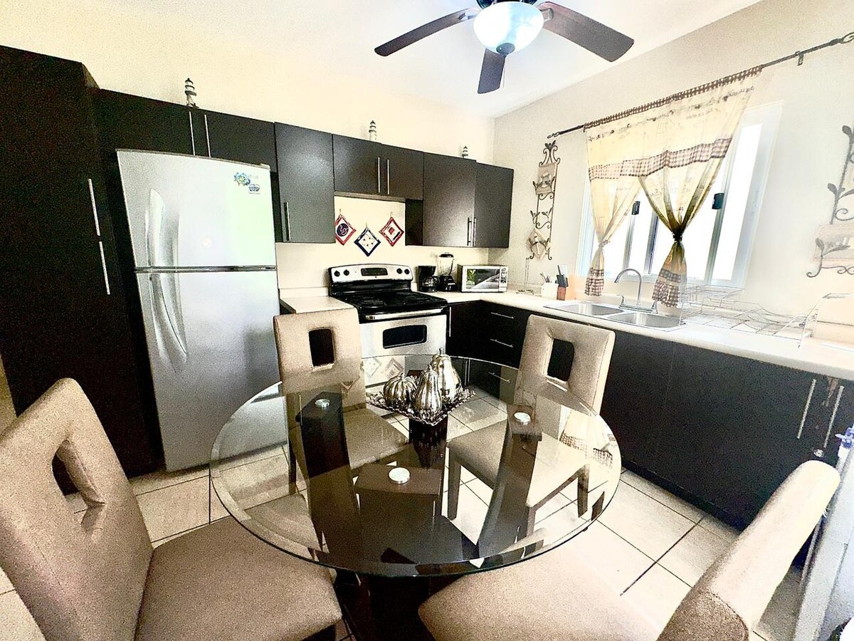 Sveiki atvykę į rojų saulėje! Šis erdvus namas yra vos už 20 km nuo La Ceibos, esančio gražiame Palma Real paplūdimio kurorte. Tai puiki vieta atsipalaiduoti ir jaustis patogiai. Lengvai pasieksite ramų privatų paplūdimį ir kviečiančius baseinus, o iš jų atsiveria nuostabūs vaizdai į kalnus. Ši graži aplinka skirta sukurti nepamirštamas akimirkas su šeima ir draugais, apsupta raminančių bangų garsų ir švelnaus jūros vėjo. Mėgaukitės kelione!