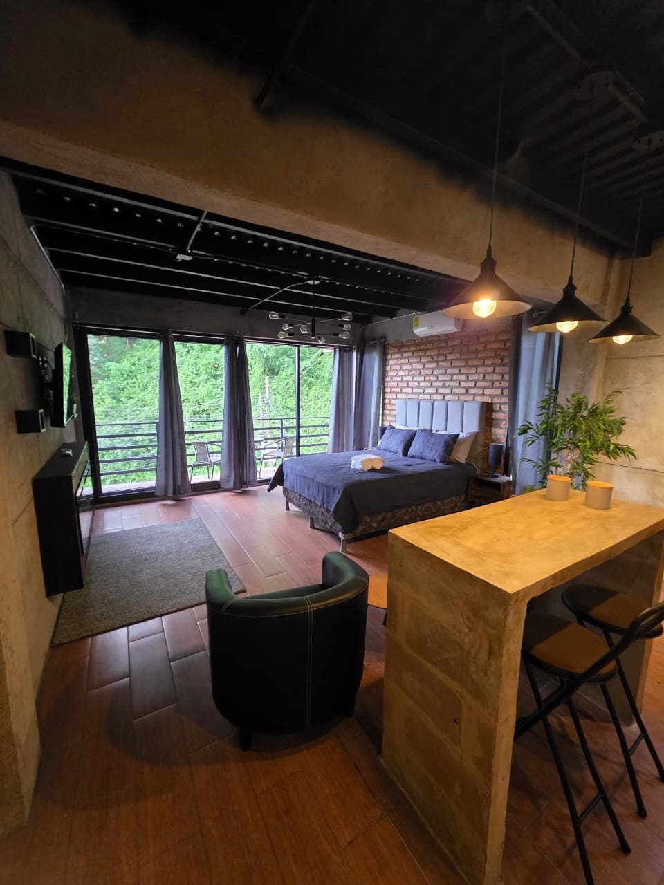 Sukurkite nepamirštamus prisiminimus šiame unikaliame ir šeimai tinkančiame būste, mėgaukitės gamta natūralaus miško viršuje su panoraminiu vaizdu į miestą šalia laužo, gyvenkite unikalia akimirka, kad galėtumėte mėgautis atostogomis su savo partneriu ir šeima, mėgaudamiesi maloniu Siguatepeque miesto klimatu, ramybės ir ramybės atmosferoje. Idealiai tinka atostogoms, šeimos vakarėliams, kepsninėms, stovyklavimui, žvejybai, žygiams, žygiams, pasivaikščiojimams, dvasinėms atostogoms ir kt.