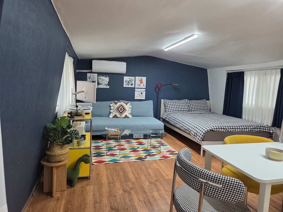 # 5 Nojaus namas už 5 minučių kelio nuo Hongik University Station!Dvigulė lova, sofa-lova! Amžiaus vidurio kambarys/bagažo saugykla! 3 žmonės