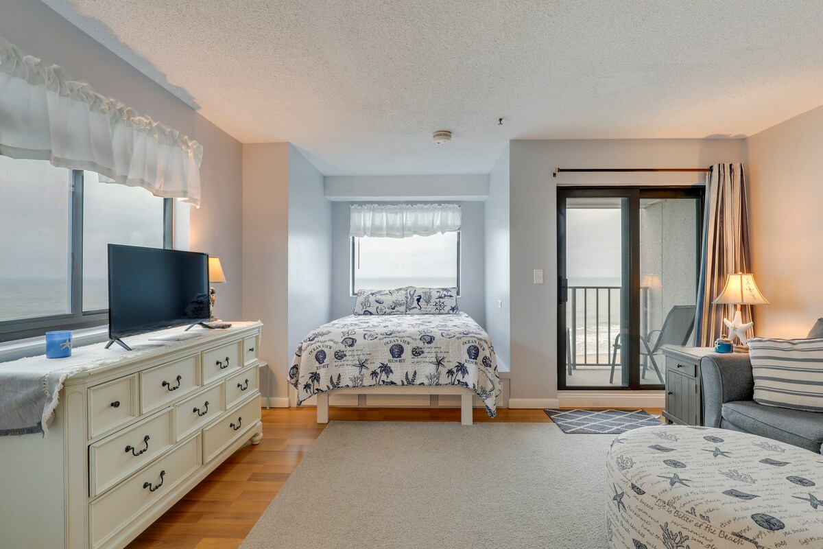 Žingsniai iki paplūdimio | Prieiga prie kurorto baseino | Privatus balkonas su baldais Apsistoję šiame pakrantės prabangiame kondominiume Šiaurės Myrtle paplūdimyje, atsipalaiduokite ir atsinaujinkite palei smėlėtus Pietų Karolinos krantus! Ši 1 vonios studijos tipo atostogų nuoma siūlo patogų poilsį paplūdimyje poroms ir mažoms šeimoms. Poilsis prie bendruomenės baseino, poilsis Bičvudo golfo klube arba pasivaikščiojimas palei vandenį kitoje gatvės pusėje! Pasibaigus dienai, galite atsipalaiduoti prie išmaniojo televizoriaus arba pasimėgauti jūros vėju balkone.