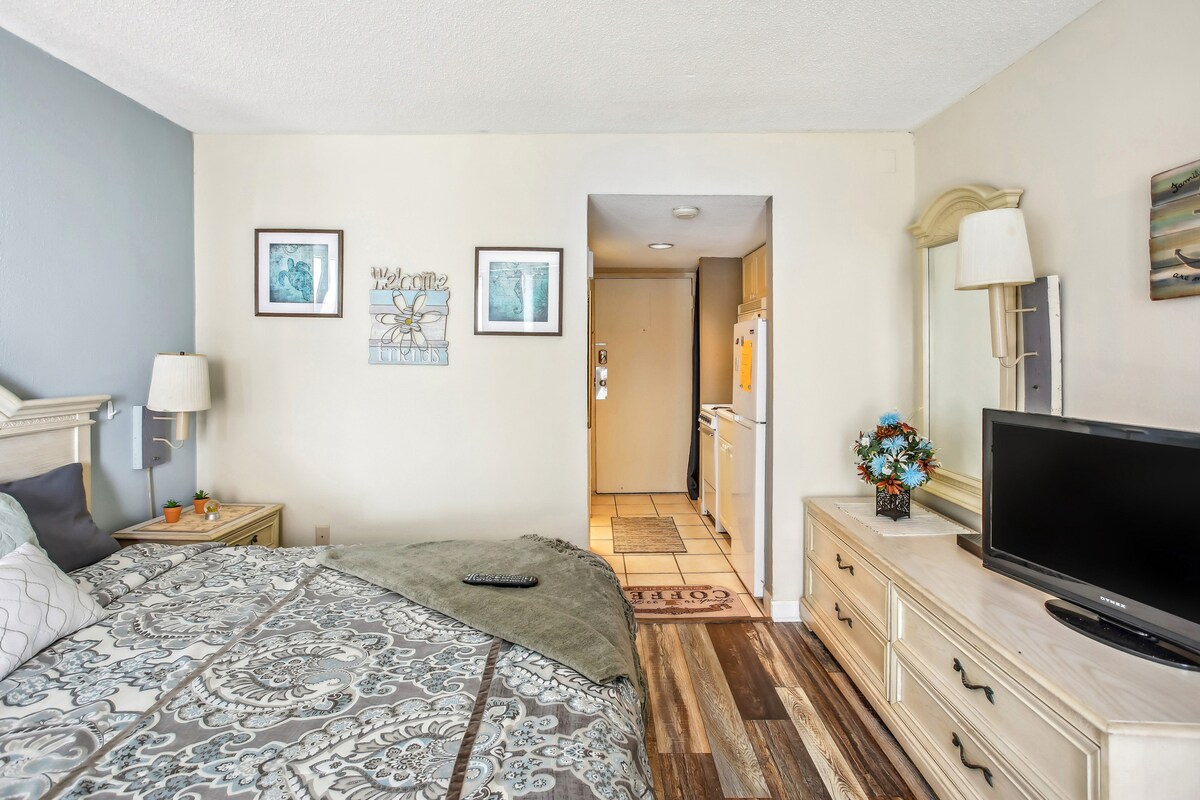 Užsisakykite šią Myrtle Beach atostogų nuomą įsimintinam pabėgimui! Šis 1 vonios studijos tipo butas suteikia prieigą prie bendruomenės patogumų ir netoli vietovės lankytinų vietų, todėl jis idealiai tinka poros išvykai arba solo paplūdimio kelionei. Praleiskite savo dienas nuostabiose pakrantėse arba pasivaikščiokite Myrtle Beach Boardwalk ir Promenade. Apsipirkite ir papietaukite Barefoot Landing prieš grįždami į šį gražų kondominiumą, kur galėsite atsipalaiduoti privačiame balkone arba atsipalaiduoti viduje ir žiūrėti televizorių!