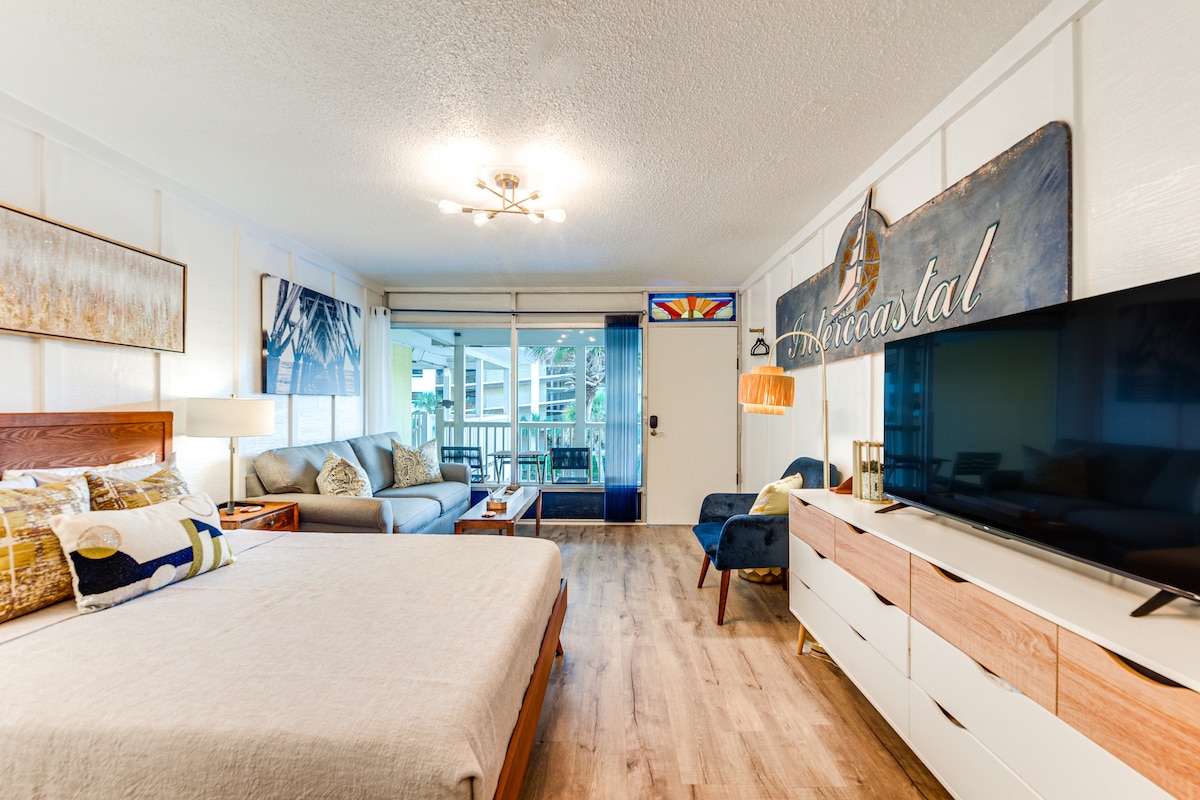 Eikite į Surfside paplūdimį: studija su dengtu balkonu
