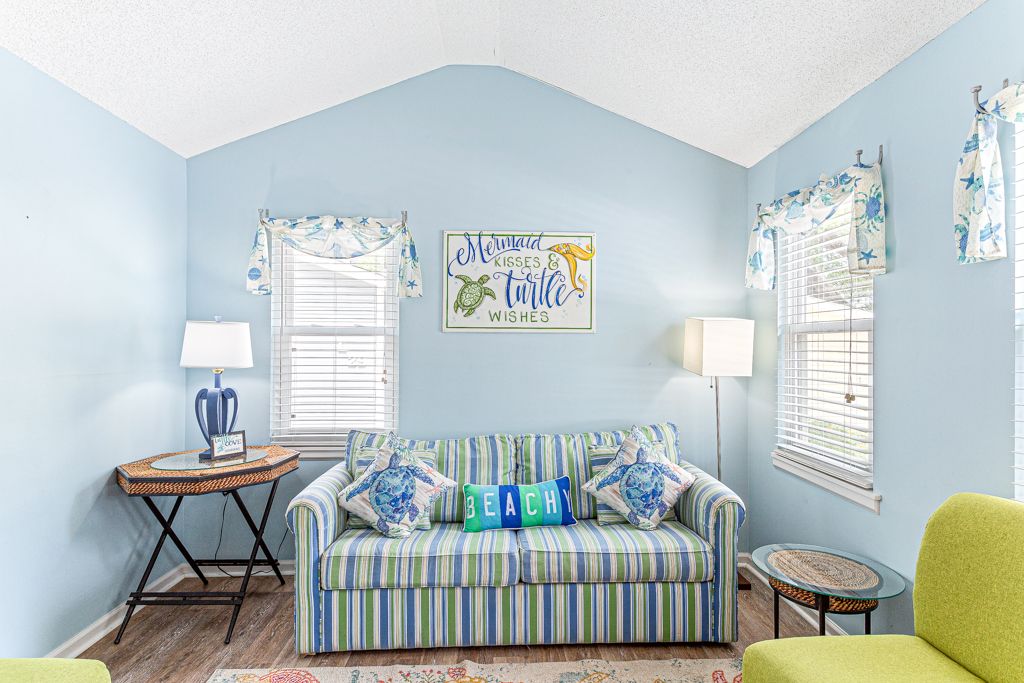 Augintiniams tinkamas paplūdimio kotedžas už kelių kvartalų pėsčiomis nuo vandenyno. Trys miegamieji ir 1 vonia, kurioje patogiai miegama 6. Neseniai renovuotas su granito stalviršiais, naujomis grindimis ir naujais dažais visur. Daug daug vietos žaisti ir bėgioti su šunimis. Jame yra didelė ekranuota priekinė veranda, kurioje galima sėdėti ir mėgautis rytine kava bei klausytis vandenyno. Yra 2 dvigulės lovos ir 1 dvigulė lova. Virtuvė yra pilnai įrengta, joje yra skalbyklė ir džiovyklė.