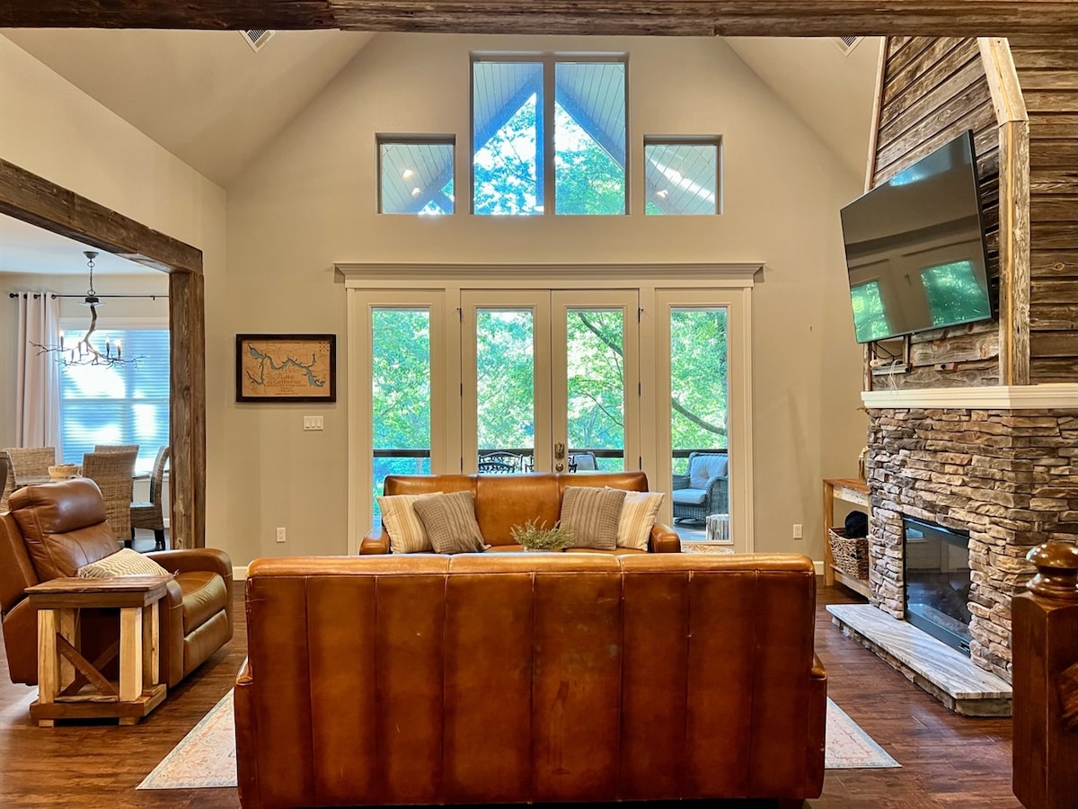 Nesvarbu, ar priimate šeimos susibūrimą, planuojate pabėgimą su draugais, ar ieškote ramaus pabėgimo prie ežero, šis prabangus 8 miegamųjų, 6,5 vonios kambarių, 6200 kv. pėdų namas puikiai tinka didelėms grupėms. Mėgaukitės žaidimų kambariu, teatro kambariu ir šefo virtuve arba išeikite į lauką prie privataus prieplaukos, laivų rampos ir erdvios verandos. Apgalvotai suprojektuota visų amžiaus grupių svečiams, ši aukštos klasės poilsio vieta yra puiki vieta smagiai, atsipalaiduoti ir nepamirštamiems prisiminimams.