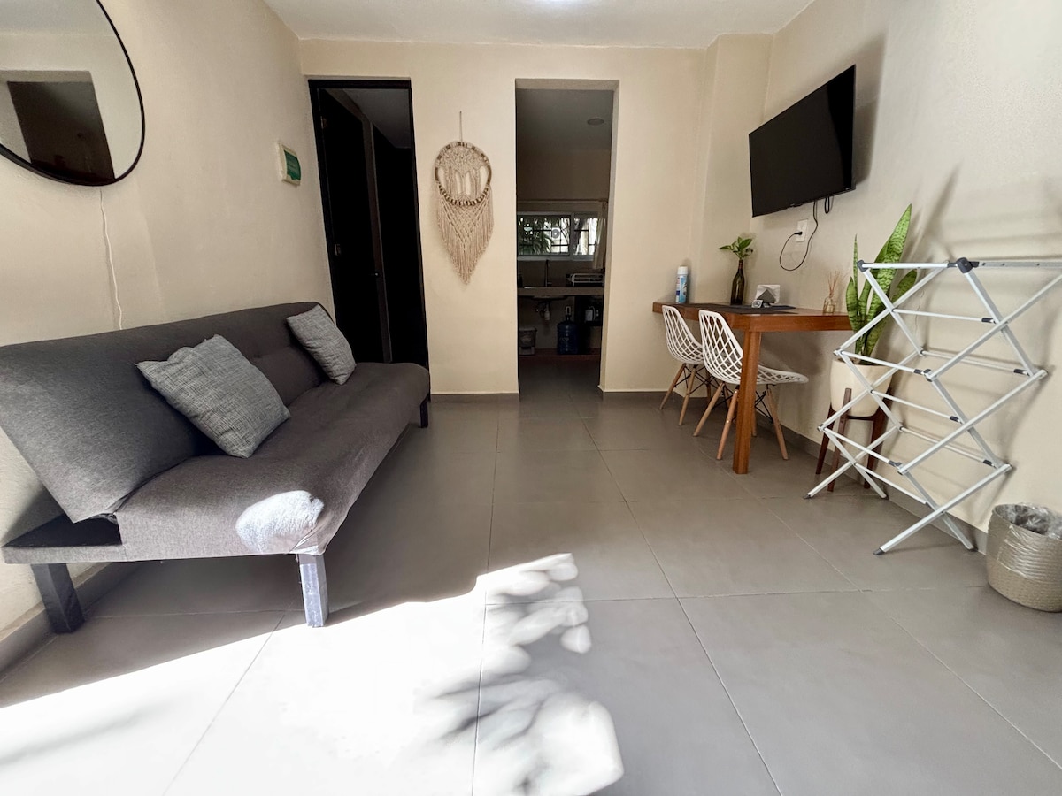 Atraskite Kankuną šioje patogioje studijoje pačioje miesto širdyje. 100 metrų nuo ADO autobusų stoties ir R1 autobuso, kuris jus nuveš tiesiai į paplūdimius. Apsuptas vietinės kultūros, pvz., Palapo parko, 23 ir 28 turgaus. Tyli, saugi zona su viskuo, kas yra netoliese: restoranai, prekybos centrai ir parduotuvės. Puikiai tinka keliautojams, ieškantiems komforto, vietos ir autentiškumo savo potyryje. Jei norite susipažinti su vietiniu gyvenimu ir pasivaikščioti, tai yra puiki vieta apsistoti Kankune!