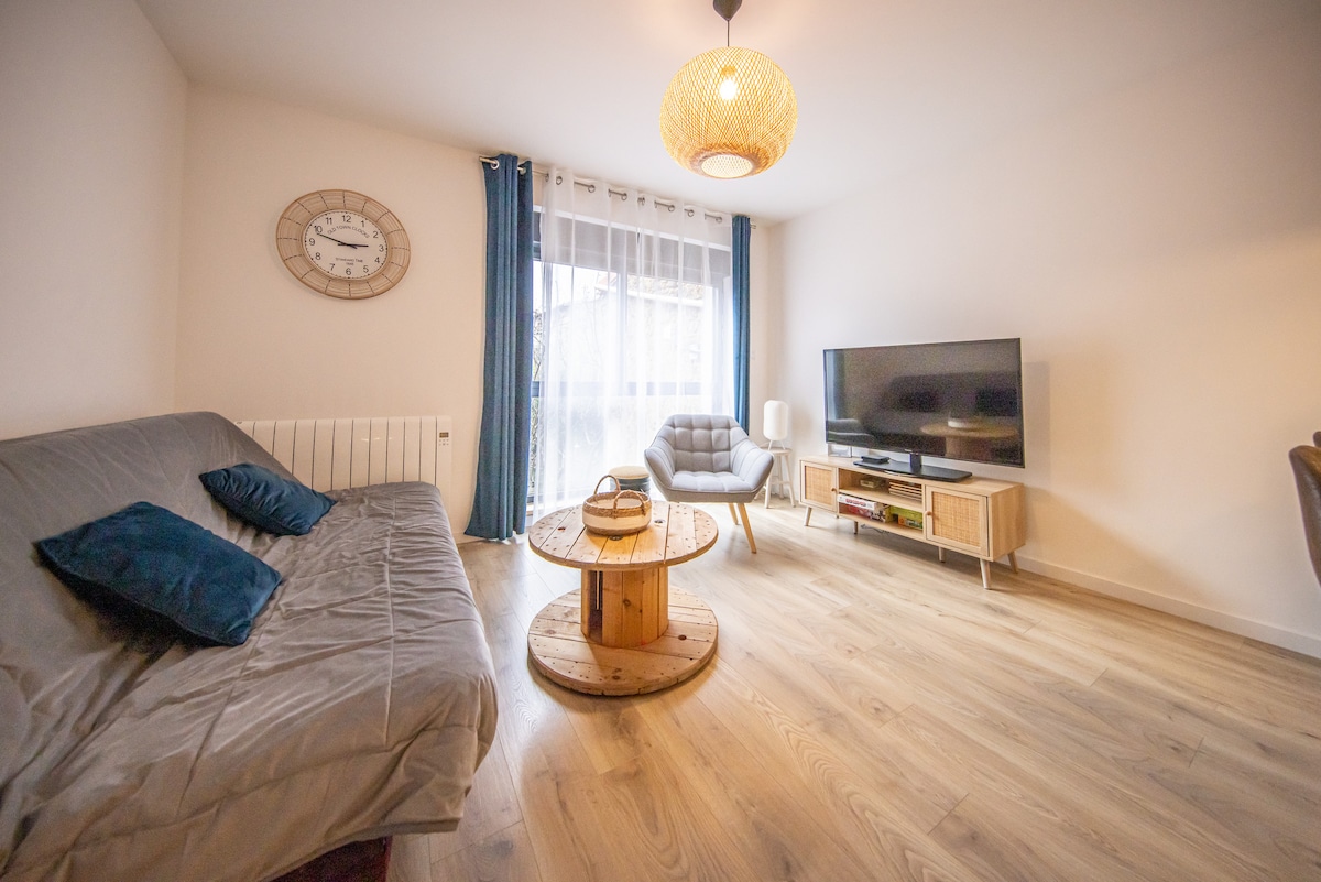 Profitez de cet appartement de 50m2 avec terrasse et place de parking souterain. Idéalement situé pour une cure thermale, un séjour touristique ou voyage professionnel. Situé dans un quartier calme, à deux pas du Domaine du Charmois, proche des thermes, commerces et parcs. Accès direct au centre-ville via la ligne T1 (arrêt Montet Octroi à 2min). Serviettes de bain incluses. TERRASSE NON ACCESSIBLE POUR CAUSE DE TRAVAUX. PROCHAINEMENT DISPONIBLE ! Crédit photos : @maisonlajeanne