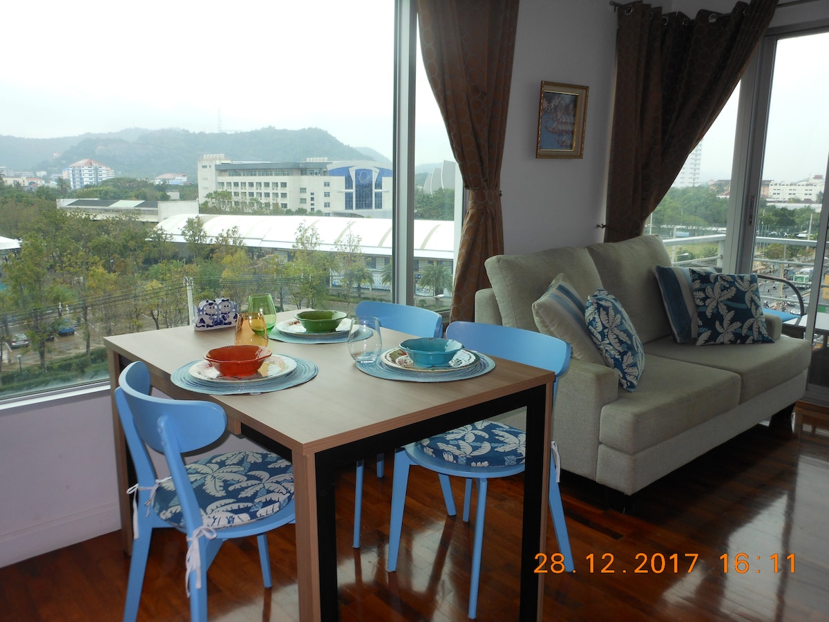 Ketvirtame aukšte, Hua Hin centre, yra gražus renovuotas butas su gražiais kalnų vaizdais. 5 min. pėsčiomis iki garsaus naktinio turgaus - 10 min. pėsčiomis iki barų, restoranų ir paplūdimio. Kondominiume yra nauja įrengta virtuvė - „-Aircon-Fan-Safe “karališko dydžio lova. Taip pat yra 5G Wi-Fi, labai greitas ir labai geras televizijos paketas su filmais, naujienomis, sportu.