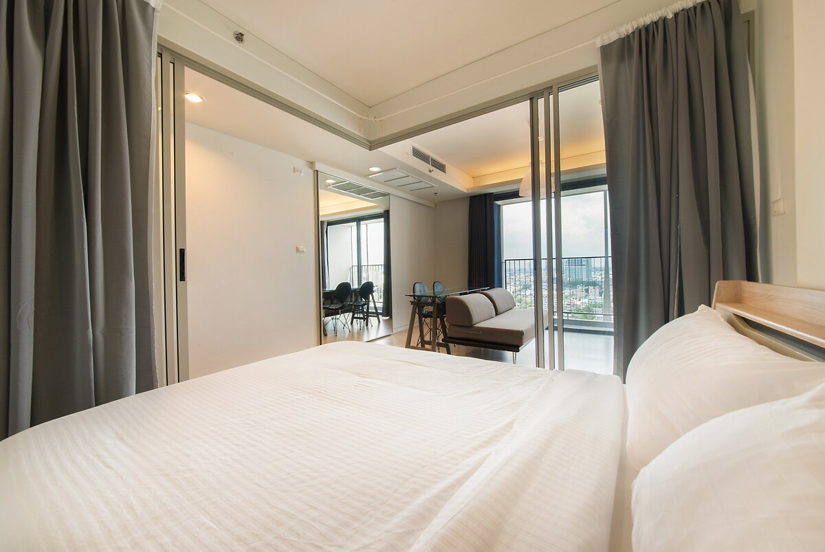 Sveiki atvykę į mūsų jaukų butą su aukštomis lubomis 27-ame Edge Sukhumvit 23 aukšte. Vos keli žingsniai nuo BTS Asok ir MRT Sukhumvit. Svetainė yra šviesi, su viso aukščio langais, o lofto stiliaus miegamajame yra ir viršutiniame aukšte esanti miegojimo erdvė, ir apačioje esanti darbo zona su papildoma lova. Geriausia tai, kad baseinas ir sporto salė yra tame pačiame aukšte, todėl viešnagės metu lengva atsipalaiduoti ir išlikti aktyviems.