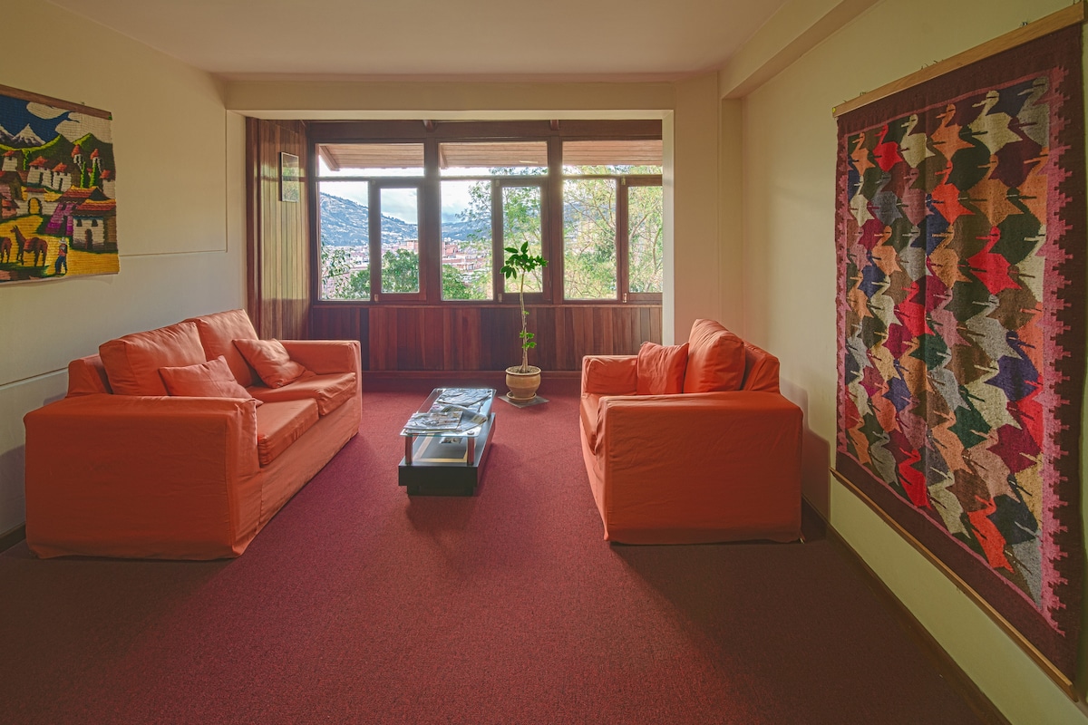 Gražus, ramus ir švarus kambarys, karšti dušai. Puikiai tinka Peru. Draugiškas personalas. Galite užsisakyti papildomai pusryčiams. Graži, linksma terasa. Huarase esame už 10 000 pėdų, todėl mūsų pirmoji diena buvo sunki. Čia buvo lengva atsipalaiduoti. Visuose mūsų kambariuose yra privatus vonios kambarys. Dideli kambariai, ramybės. Nemokamas Wi-Fi internetas Svetainė ir graži terasa Kelionių agentūra | Pasivažinėjimai kalnų dviračiais