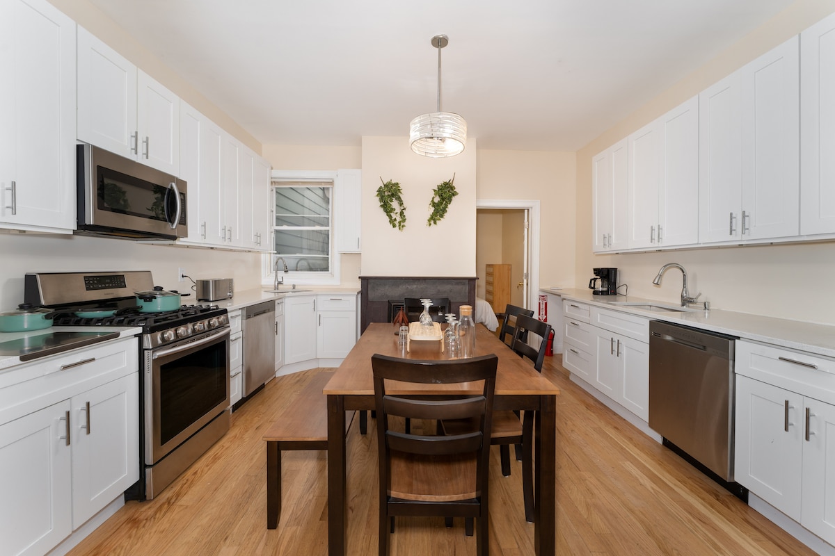 Sveiki atvykę į Liberty State Luxury in The Heritage House - Wilder Co Properties viešnagę Džersio miesto centre! Mūsų saulės nutviekstas 3 miegamųjų dviaukštis butas yra privatus ir ramus, įsikūręs istoriniame rudųjų plytų name ir turi patogumų šeimoms, verslo keliautojams ir draugams – karališko dydžio lovas, oro kondicionierių, Wi-Fi, išmanųjį televizorių, skalbimo mašiną, orkaitę, indaplovę, kiemo kepsninę ir dar daugiau! Gražus ir saugus rajonas su restoranais, parduotuvėmis ir parkais, esančiais už kelių kvartalų ir Niujorkas už 10 minučių kelio traukiniu! NĖRA AIRBNB MOKESČIO