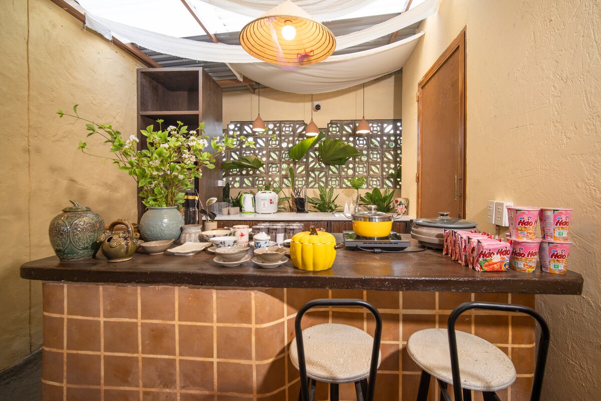 Šioje erdvioje, privačioje ir unikalioje erdvėje jausitės patogiai. Gyvensite kaip vietiniai, patirsite Centrinės Vietnamo šeimos gyvenimą ir turėsite daug gerų pasiūlymų, kaip tyrinėti Hue. Mano namai yra netoli užsienio kalbų universiteto Hue, o iš čia lengva nuvykti į Hue centrą išsinuomotu automobiliu, motociklu, dviračiu...arba naudojant vietines transporto programėles, pvz., „Grab“ ir kainuoja apie 1-2 $. Jis taip pat yra netoli Thuy Tien ežero ir daugelio istorinių kapų, taip pat netoli daugelio vietinių maisto vietų.