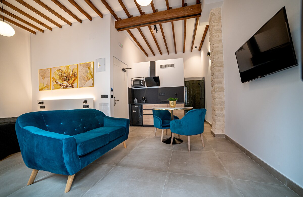 Šis gražus, erdvus ir šviesus 110 kv. m loftas yra pačiame istoriniame Alikantės centre su vaizdu į senamiestį. Mes atnaujinome ir suprojektavome šią vietą laikydamiesi tradicinių to meto statybos būdų, naudodami kalkakmenį ir medines sijas, tačiau siūlome visus šiuolaikinio buto patogumus ir šiek tiek prabangos. Paplūdimys yra už 5 minučių (350 m) pėsčiomis, o daugybė netoliese esančių barų ir restoranų kviečia pasimėgauti tipiška senamiesčio Viduržemio jūros atmosfera.