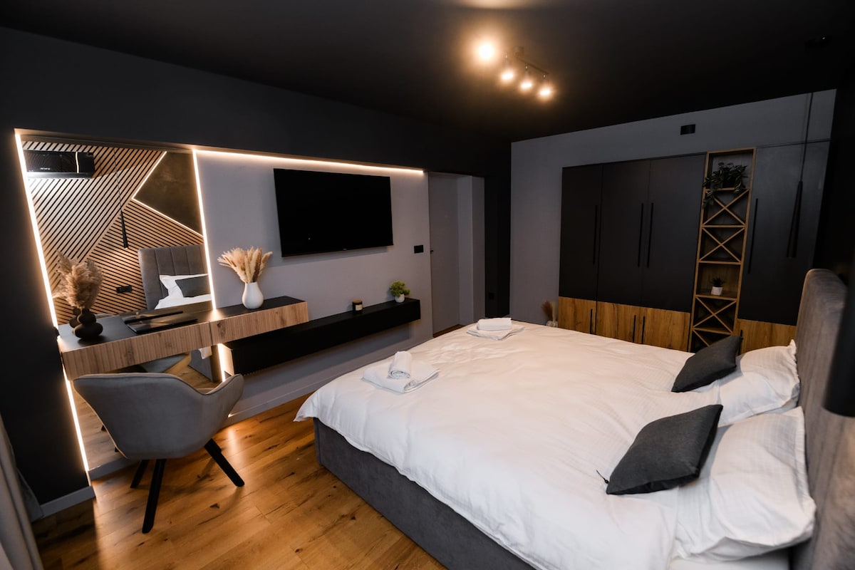 Butas yra Hunedoaros centre, šalia pėsčiųjų alėjos (viena minutė), 100 m nuo kultūros namų ir apie 1,5 km nuo Corvin pilies. Būdami miesto centre, netoliese galima rasti daugybę komercinių, bankininkystės ir valgymo įstaigų. Bute svečiams yra miegamasis su karališko dydžio lova, išmaniuoju televizoriumi, oro kondicionieriumi, belaidžiu internetu, taip pat vonios kambarys su dušu, tualetu, bidė ir virtuve su šaldytuvu,virykle, skalbimo mašina, kava ir arbata.