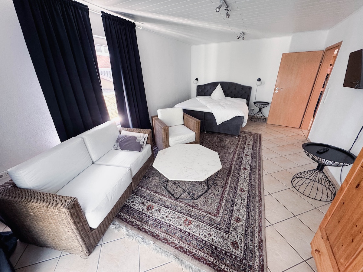 Sveiki atvykę į mūsų modernų butą Hürth-Efferen – puikiai tinka keliautojams, turintiems greitą prieigą prie Kelno! ✨ Patogumai: ✔️ Šviesus, stilingas kambarys ✔️ Jauki virtuvė ✔️ Patogi miegamoji sofa ✔️ Greitas Wi-Fi ir televizija ✔️ Tik 15–20 min. iki centro Vieta: Didelė erdvė, nauja uždara bendruomenė. Autobusą Nr. 978 galima pasiekti per kelias minutes. ✅ Puikiai tinka turistams ir verslo keliautojams! 📅 Užsisakykite dabar!