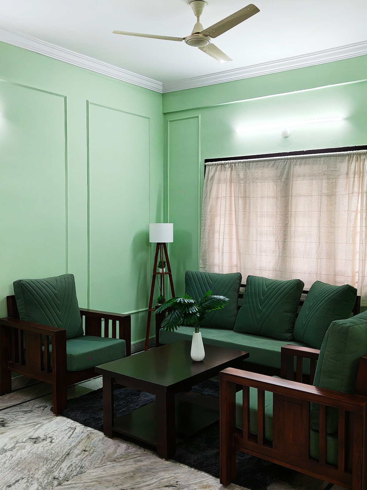 Mėgaukitės atpalaiduojančia šeimai pritaikyta atostogomis mūsų jaukiuose 2 miegamųjų namuose Tolichowki rajone, Haidarabade. Mėgaukitės komfortu su dviem atskirais oro kondicionieriais, išmaniuoju televizoriumi, sparčiu „Jio“ belaidžiu internetu, dvigulėmis lovomis, pilnai įrengta virtuve, šaldytuvu, skalbimo mašina ir vandens šildytuvu. Kelionės be rūpesčių teikiamos visą parą veikiančiomis mokamomis taksi paslaugomis iš oro uosto, geležinkelio stoties ir kitų svarbių vietų. Suteikiame 4 nemokamas 20 litrų vandens kanistrus, o už papildomus kanistrus reikia mokėti.Jei viešnagė trunka ilgiau nei 30 dienų, sąskaita už elektrą išrašoma pagal faktinį suvartojimą.