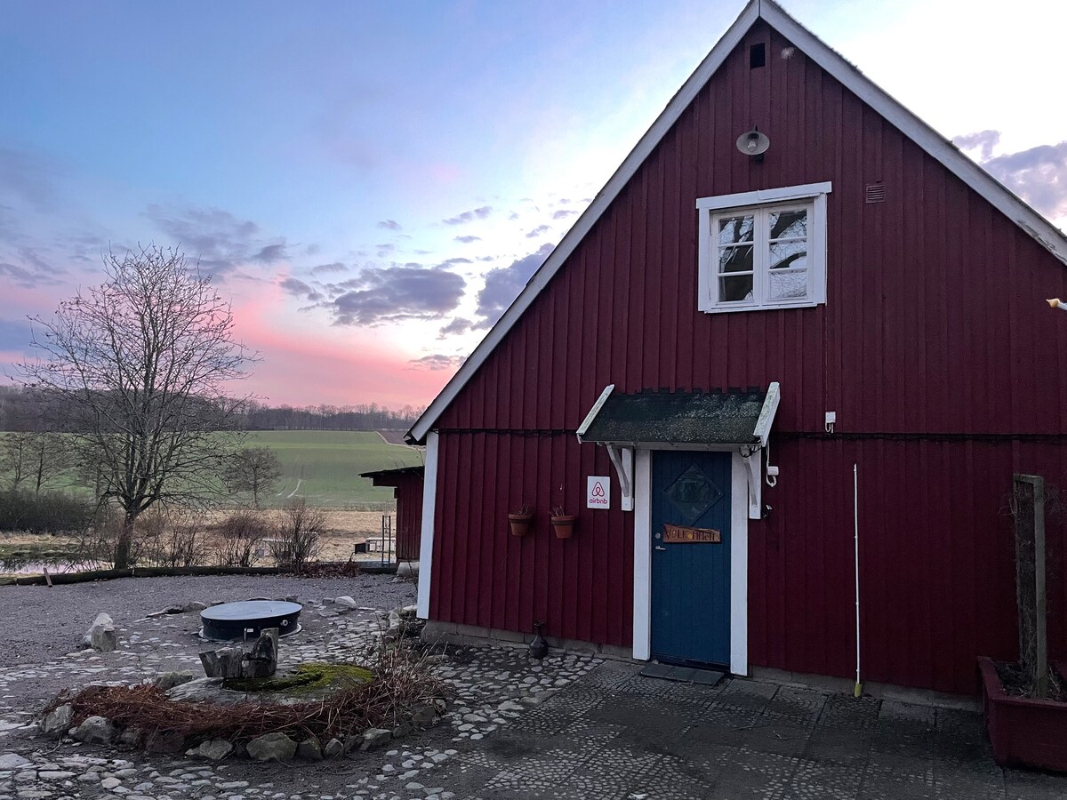 Gražioje kaimo vietovėje, netoli Röstånga. Funkcionalu ir šviežia. Jūs turite du maždaug 25 kv. m. aukštus, įrengtus pačiame klėties gale, kuriais galite naudotis tik jūs. Miegamasis yra viršuje, tačiau laiptai neturi turėklo. Virtuvėje yra dvi kaitlentės, virtuvės gaubtas, mikrobangų krosnelė, kavos virimo aparatas, virdulys ir šaldytuvas su šaldikliu. Nėra orkaitės. Pilnai įrengta virtuvė. Sofa-lova yra pirmame aukšte ir, deja, nėra patogi miegoti. Dėmesio: rankšluosčiai, patalynė ir valymas įskaičiuoti!