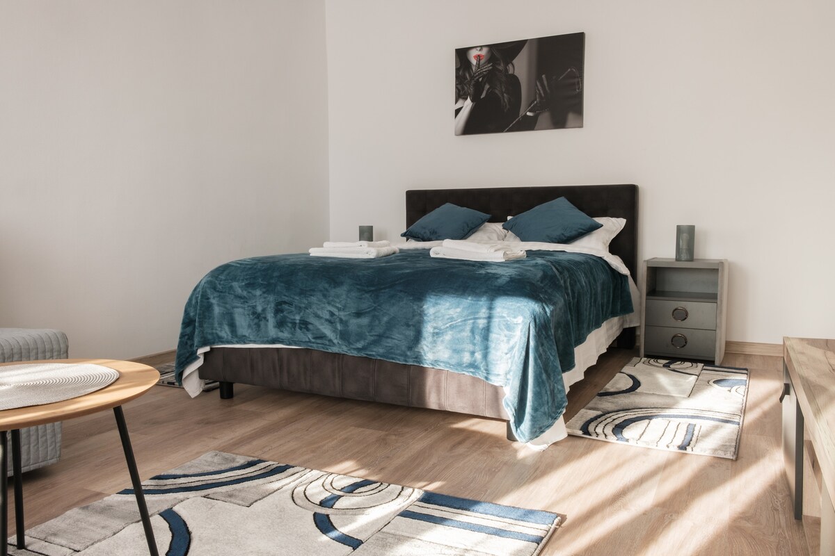 Welcome to our beautiful and modern apartment, located in the heart of the city! The apartment features a spacious and cozy bedroom with a comfortable queen-sized bed, plush linens, and plenty of closet space. The living room is bright and airy, with large windows that let in plenty of natural light. It's the perfect place to relax after a long day of sightseeing or work, with a comfortable sofa, a flat-screen TV. We look forward to hosting you in our beautiful apartment!