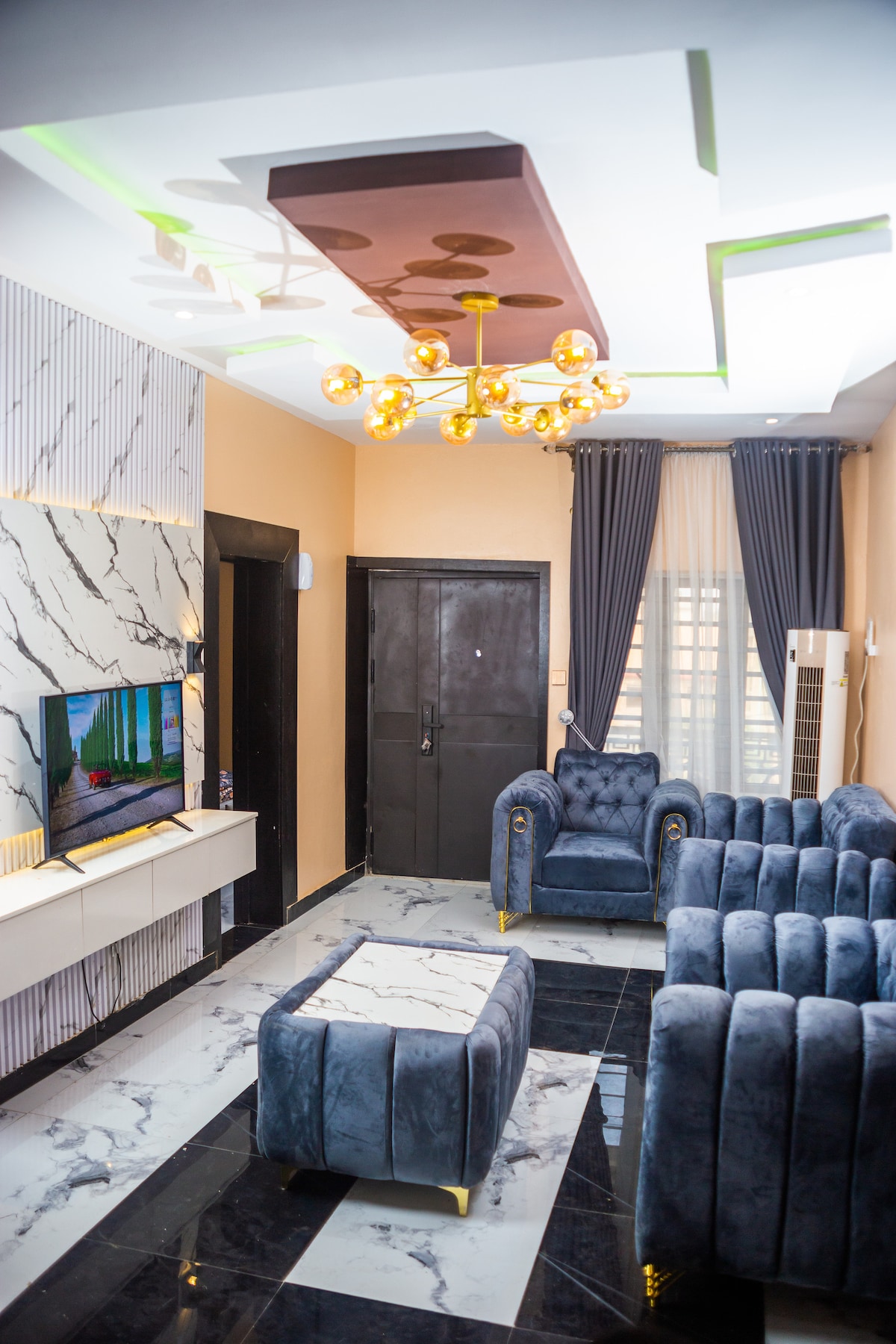 Pabėkite į ramią Olumide oazę pačioje miesto širdyje! Mūsų prabangus 3 lovų butas su 33 kva Transformer garantuoja nepertraukiamą elektros tiekimą. Atsipalaiduokite stilingai su mūsų pliušinėmis karališko dydžio ir dviem karališko dydžio poilsio vietomis, kurių kiekviename yra vonios kambariai, kad jaustumėtės patogiai. Palaikykite ryšį su greitu Wi-Fi, palaikomu budėjimo generatoriumi! ir Netflix su mūsų 65 ir 42colių išmaniaisiais televizoriais, pilnai įrengta virtuve ir privačiais balkonais. Puikiai tinka ilgalaikėms viešnagėms, šeimoms ir grupėms. Užsisakykite dabar ir atsipalaiduokite stilingai