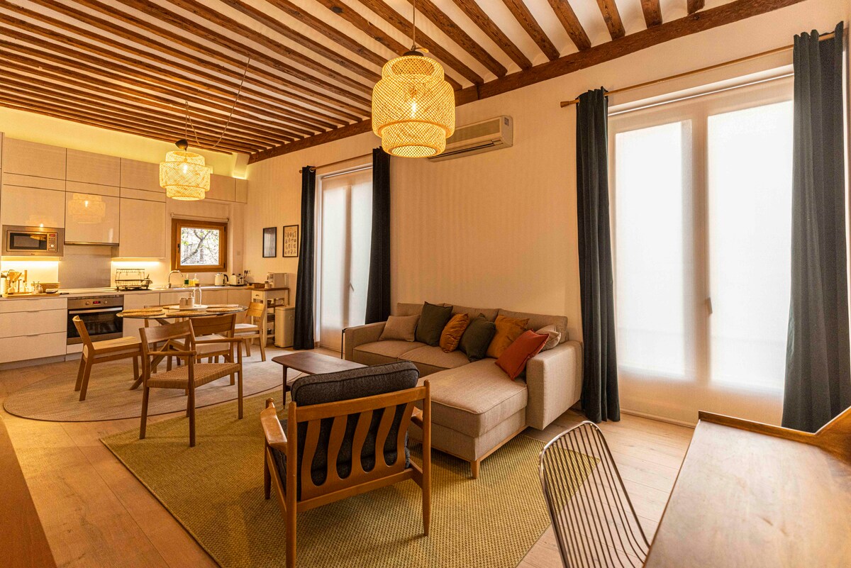 Nauja, elegantiška ir naujai renovuota , įsikūrusi tylioje pėsčiųjų gatvėje istoriniame Madrido centre, centriniame La Latina rajone. Yra viskas, ko reikia, kad galėtumėte mėgautis nuostabia viešnage ir susipažinti su miestu. Bute yra labai šviesi didelė svetainė su dviem balkonais gatvėje, elegantiška atvira virtuvė su valgomojo stalu. Yra du miegamieji, sofa-lova ir modernus vonios kambarys su dušu.
