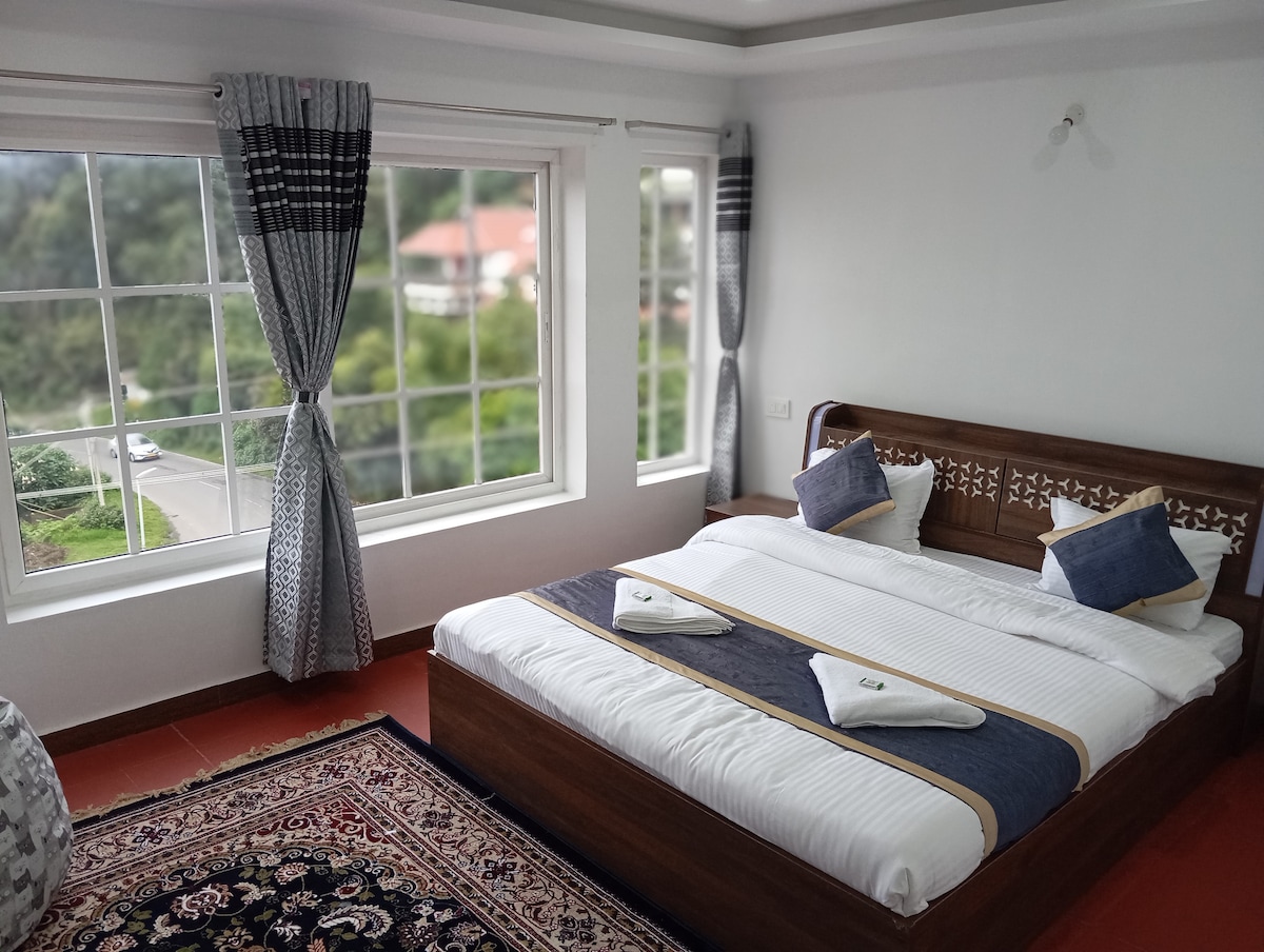 Ši jauki ir stilinga 2 miegamųjų vila, įsikūrusi ramioje viršutinio Kodaikanal dalyje, iš kurios atsiveria panoraminis vaizdas į slėnį, yra puiki vieta apsistoti Kodaikanale. Esant vos už 4 km nuo garsaus ežero ir miesto centro, jis yra tuščia vieta - toli nuo šurmulio ir šurmulio, tačiau pakankamai arti, kad galėtumėte peršokti, jei norite! Šiame žavingame kambaryje yra dvi viengulės lovos, kurias svečio prašymu galima sujungti. Iš kambario atsiveria vaizdas į verandą ir už jo esantį slėnį.