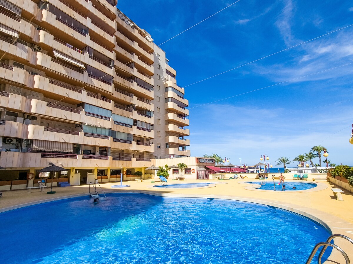 Gražus reformuotas 1 miegamasis (dvigulė lova) butas įsikūręs ant priekinės linijos Playa la Fossa paplūdimio per žiūri Penyon Ilfach. Įsikūręs 5 aukšte su nuostabiais vaizdais ir nuostabiais saulėtekiais. Visi patogumai yra už trumpo kelio pėsčiomis. Bute įrengta patogi viešnagė - poilsis toli nuo namų paplūdimyje. Vietovė yra labai populiari vieta pėsčiųjų ir dviračių su daugybe gamtos parkų, kalnų ir pakrančių maršrutus.