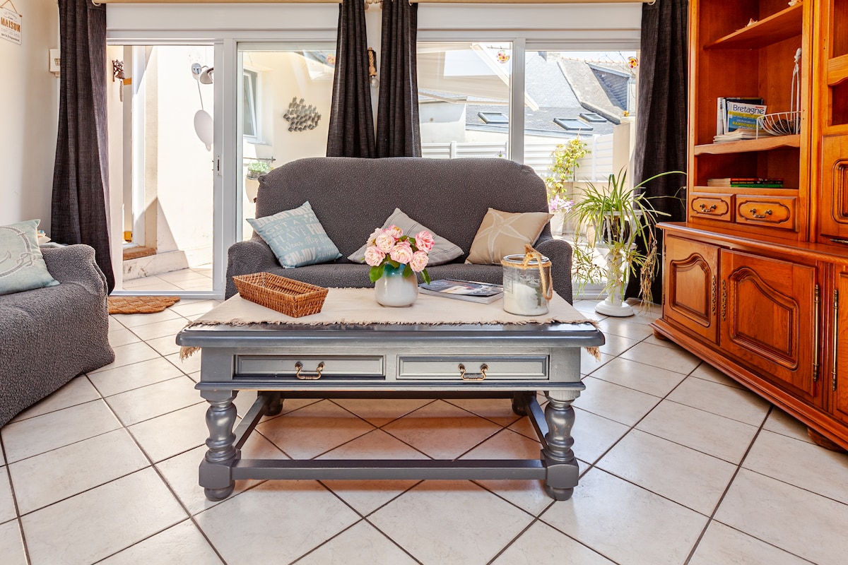 Puiki vieta pasivaikščioti iki Roscoff: 5 minutės pėsčiomis iki istorinio miesto centro (parduotuvių, restoranų ir senojo uosto). Pereikite gatvę ir būsite Thalasso & Spa ir už 50 m nuo jūros (Rockroum paplūdimys, idealiai tinkantis šeimos sekmadienio datai). Idealiu atveju taip pat galima nuvykti į Batzo salą. Žavingas butas, ką tik renovuotas architekto (2024 m.). Dizainas, spalvingi ir dekoratyviniai kambariai, idealiai parinkti, kad jaustumėtės kaip namie!