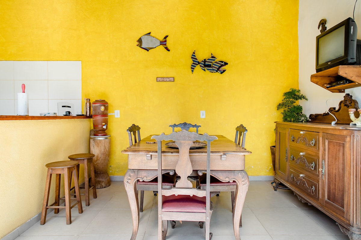 Visas namas su kiemu ir sodu, kad išgirstumėte namuose besilankančių paukščių garsus. Neoklasikinis vienaaukštis vasarnamis Térrea gerai įrengtame rajone, už kelių metrų nuo centrinės Cananéia prospekto. Supermercados, kepyklos, vaistinės. 📍Atvykimas ir išvykimas gali būti lankstūs, priklausomai nuo dienos užimtumo, ir gali būti vėlyvą popietę. Peržiūrėkite tvarkaraščių prieinamumą su šeimininku. 🐕 Jie turi būti įtraukti į rezervą tiksliu kiekiu. 🛏️ Trazer Manta arba antklodė, kurią reikia paslėpti.