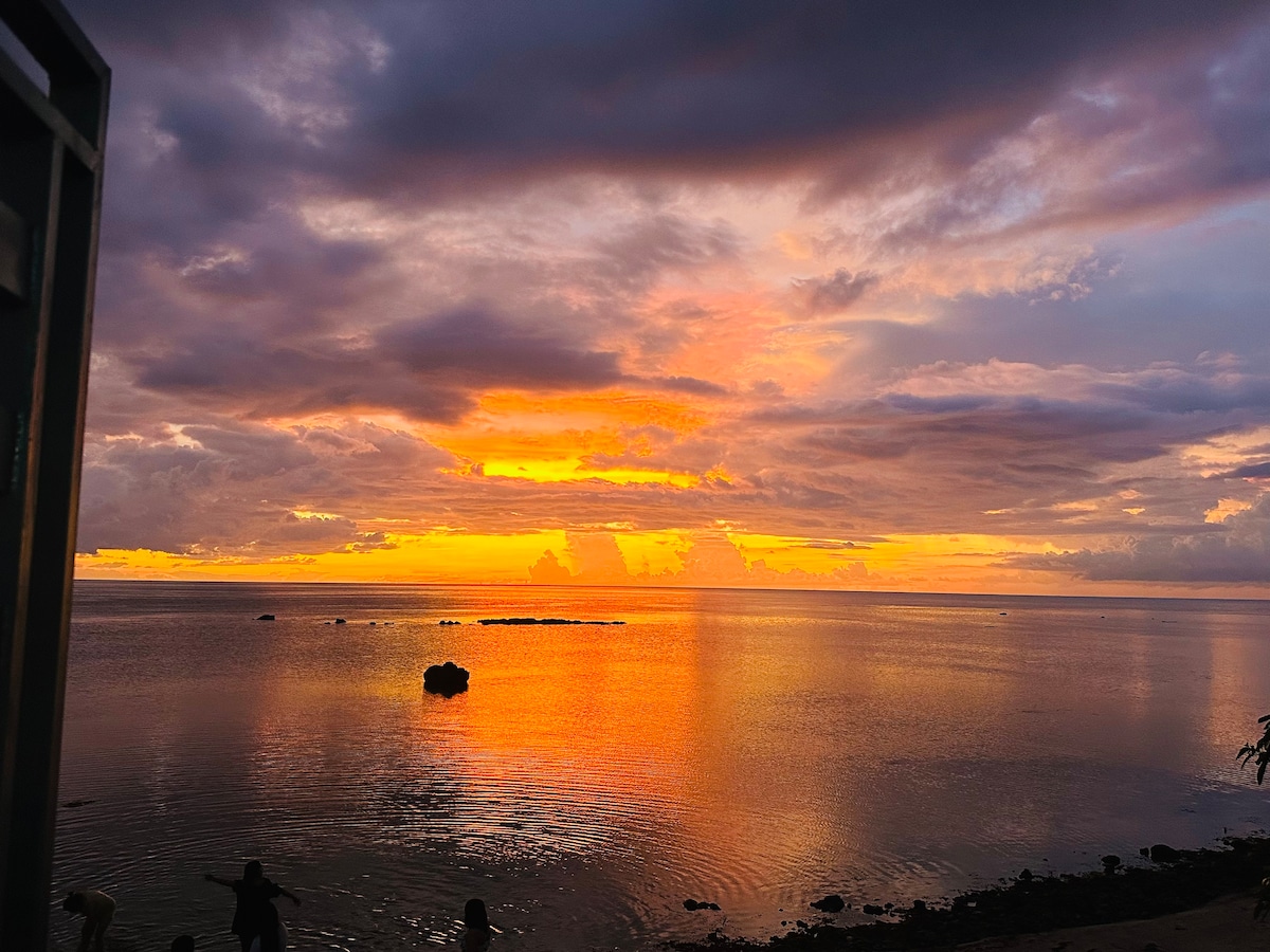 If you want to have more peaceful and relaxed stay outside the busy Resort nightlife, you are most welcome here in our private home away from home.. Everything is personalized for you. Listen to the cool breeze in the morning, the beach waves and the relaxing vibe brought to you by nature. You will have the best sunset in the pool area!!! We have 3 bedrooms that are fully AC including the whole living room and a drivers room. Our home is 25minutes away from the surfing Capital, San Juan.