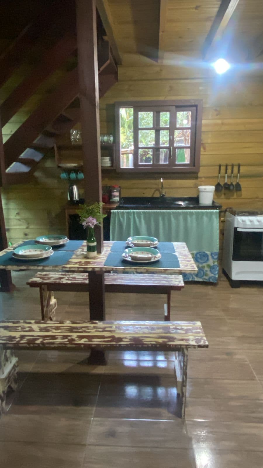 Você vai adorar a decoração estilosa deste charmoso lugar para ficar. Quem cresceu no campo conhece o prazer de acordar com o cantar do galo, comer frutas frescas, correr pela estrada de cascalho e respirar ar puro. É uma paciência gostosa, uma paz que envolve a alma, a mais autêntica das felicidades. O chalé suíte da chácara das Estrelas surge com a experiência do campo e ao mesmo tempo é aconchegante e romântico com uma vista única para as montanhas em torno da nossa bela cidade de Imaruí.