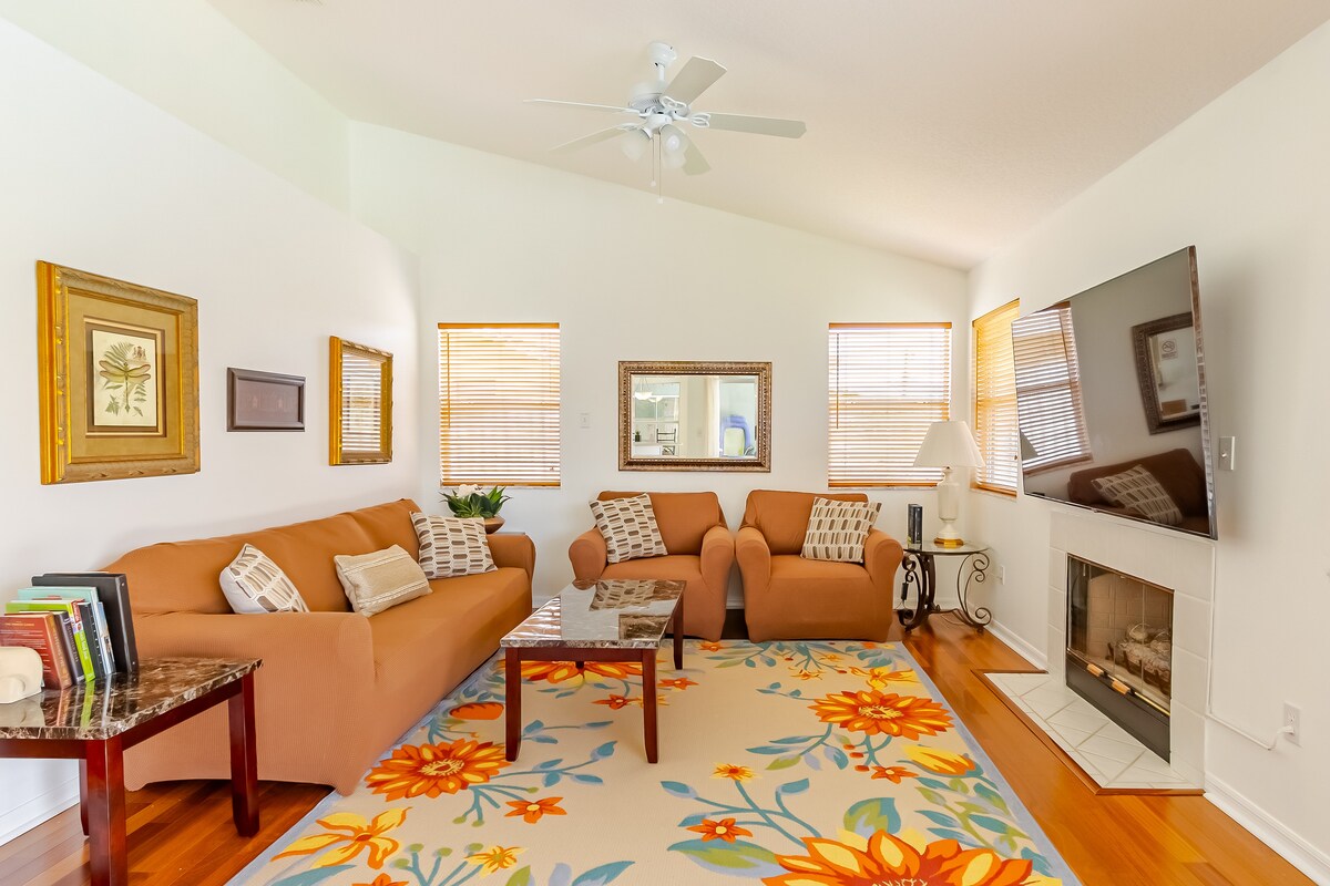 Pabėkite į mūsų atnaujintą Floridos tematikos studiją, kurioje dabar yra privatus lauko dušas ir vonia – puikiai tinka atsipalaiduoti po kelionės! Pilnai įrengta virtuvė, nauji baldai ir vietiniai Floridos meno kūriniai. Mėgaukitės raketų paleidimais, gražiais saulėlydžiais prie upės (už 1 kvartalo) ir greita prieiga prie Kakao paplūdimio, Kakao kaimo ir Kenedžio kosminio centro. Vos 15 minučių kelio nuo Kanaveralo kyšulio, jei jums reikia vietos apsistoti prieš kruizą arba po jo. Atsipalaiduokite, įsikraukite ir pasimėgaukite ramybe!