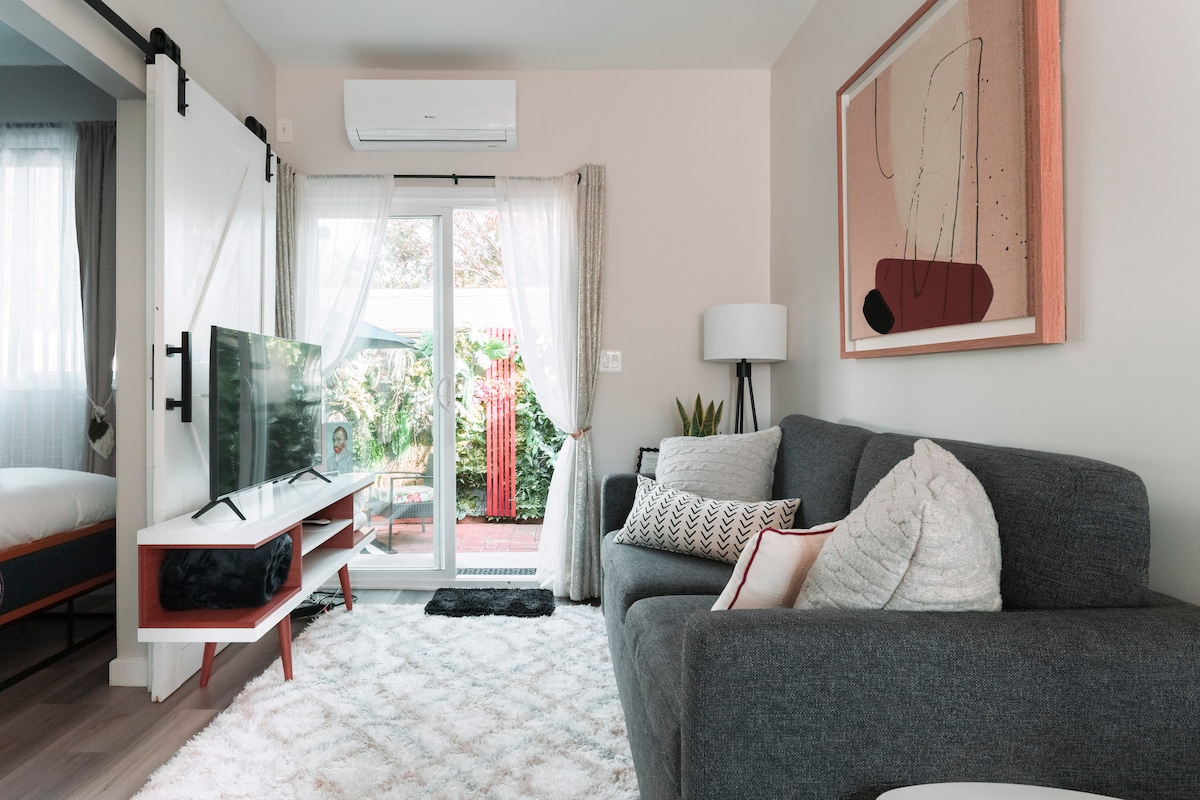 Mūsų vidinė studija yra tikras paslėptas perlas Los Andžele! Įsikūręs ramiame rajono kvartale su daugybe automobilių stovėjimo aikštelių, geriausiu azijietišku maistu netoliese ir paplūdimiais už 20 minučių kelio automobiliu. Toli nuo Los Andželo gyvenimo triukšmo ir verslo, bet pakankamai arti visų veiksmų ir linksmybių, kai to reikia. Sukurta taip, kad sukurtų dvi konkrečias erdves, jaukią svetainę ir stilingą kambarį su daug natūralios šviesos, bet taip pat užtemdytų užuolaidų, kad būtų užtikrintas geresnis miegas. Įėjimas turi prancūziškas duris, kurios atsiveria į nedidelį vazoninį sodą.