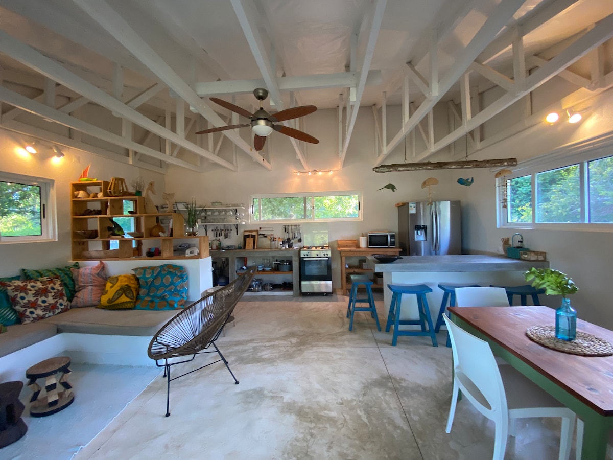 Escape to our peaceful off-grid bungalow 20km north of Vilanculos, powered by a 20kWh solar system. Nestled in nature with few neighbours, it’s the ideal retreat for anyone seeking simplicity, and spectacular Mozambican sunrises and ocean views. Spend your days island-hopping or strolling to the white-sand beach, then relax on the veranda with a braai and sundowners as the sky fills with stars and the moon lights the ocean. Comfortable, self-contained, and eco-friendly. Ideal for 2 families.