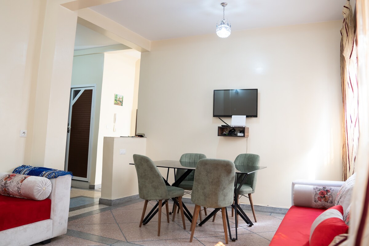 Vous êtes les bienvenus dans mon appartement chic et moderne prêt à vous accueillir dans un quartier propre sécurisé et proche de toutes les commodités (boutiques, restaus..) ainsi que vous offrir un sentiment de convivialité et une atmosphère chaleureuse comme si vous étiez chez vous. L'appartement est composé d’un salon, d’une chambre à coucher, d’une salle de bain avec eau chaude, une cuisine entièrement équipée, balcons, 2 grandes TV+Netflix , Wifi fibre optique ultra rapide et ascenseur