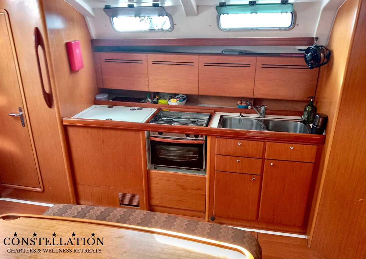 Rezervuokite privačią patogią burinę jachtą ypatingoms atostogoms ar renginiui. Trys privačios dvigulės kajutės, dvigulė lova salone, du vonios kambariai, pilnai įrengta virtuvė ir erdvi kabina. Įskaičiuota kelionė po salas, nardymas su vamzdeliu, irklentės, baidarė ir motorinė valtis.