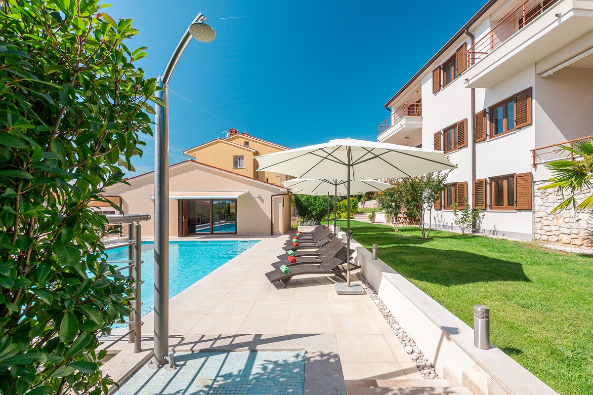 Šiuolaikinė vila Istrijoje, priešais Brijunį netoli Pulos. Apsuptas Viduržemio jūros sodo, idealiai tinka porai, bet jame gali apsistoti iki keturių žmonių. Namas, esantis už 200 m nuo paplūdimio, siūlo sveikatingumą, poilsį ir ryšį su gamta. Namuose galima rasti viską, ko reikia atsipalaidavimui, o sode yra unikalus biodesign baseinas, sūkurinė vonia, valgomojo zona ir kepsninė. Ir daug žalumos (esame draugiški gamtai ir bitėms). Nuosavybė yra visiškai aptverta ir tinkama augintiniams.