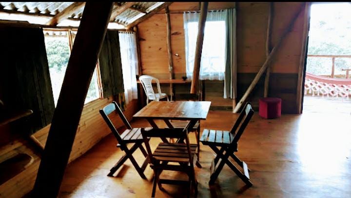 Chalet de Madeira yra 36 mts2 ir 12 mts2 balkonas. Jis yra antrame aukšte, iš kurio tolumoje atsiveria vaizdas į saulėtekį jūroje! Este Chalé yra 32 colių išmanusis televizorius; Wi-Fi, virtuvė ir privatus vonios kambarys; virtuvė su 2 vietų, 2 vietų virykle, mini baru; dviejų porų lovos; rašomasis stalas biurui; balkonas su tinklu ir lauko sofa. Gali apsistoti iki 4 (keturių) asmenų. Šeimininko profilyje už jūsų dėkingumą skelbiama apartamentai-érreas ir dar du vienaaukščiai vasarnamiai iš Havajų!