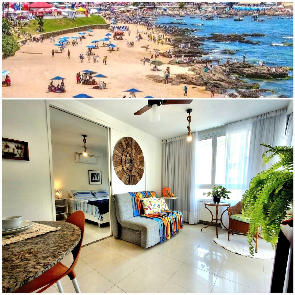Localizado em Avenida beira mar, entre as praias de Ondina e Rio Vermelho, pé na areia, com a praia ao lado do imóvel para um delicioso mergulho ou caminhar no calçadão da praia. Quarto e sala, cozinha, banheiro, garagem, WI FI. Acomoda 04 pessoas. Ar Condicionado, Internet, roupa de cama e banho, portaria 24hs. No Rio Vermelho você vai poder vivenciar excelentes experiências gastronômicas no bairro em bares e restaurantes badalados. Pacote para o Carnaval.