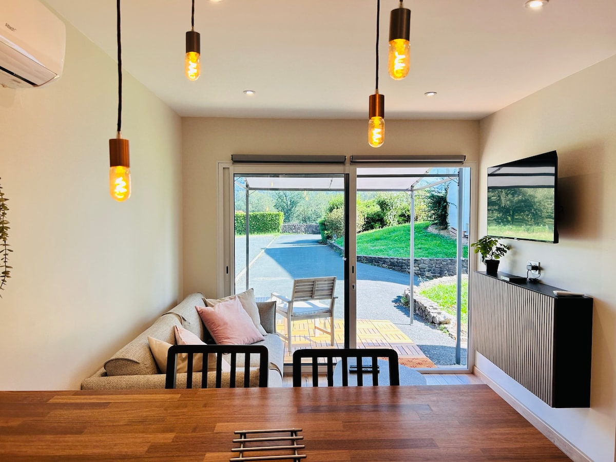Atsipalaiduokite šiame ramiame ir stilingame kotedže. Kaime, priešais Baskų krašto kalnus ir 20 minučių kelio nuo pakrantės ir paplūdimių, mėgaukitės šio visiškai naujo, jaukaus ir jaukaus būsto teikiamais patogumais. Maitinimu galima mėgautis patalpose arba lauko terasoje, mėgaujantis vaizdu ir ramybe. Taip pat turėsite vieną miegamąjį ir atskirą vonios kambarį bei oro kondicionierių