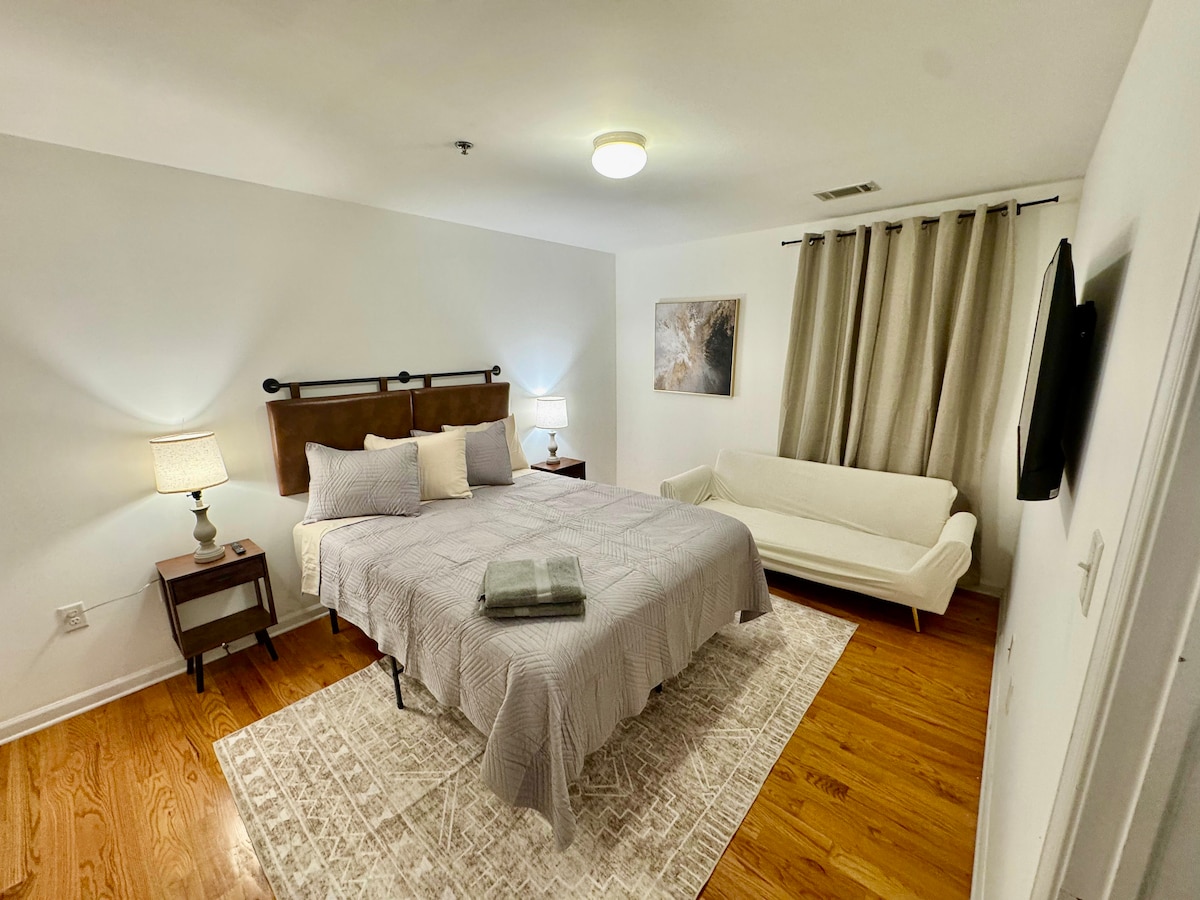 You will definitely enjoy this unique,centralized, comfortable and spacious apartment. This extra large 1 bed, 1 bath lavishly furnished apartment comes with everything that will make your stay a memorable experience. It’s located in downtown Rahway with only 7 mins walk to the train station. The quiet neighborhood has different restaurants and bars to choose from, and is surrounded by shopping centers and malls. In unit laundry, and entertainment in all areas will be adored by families.