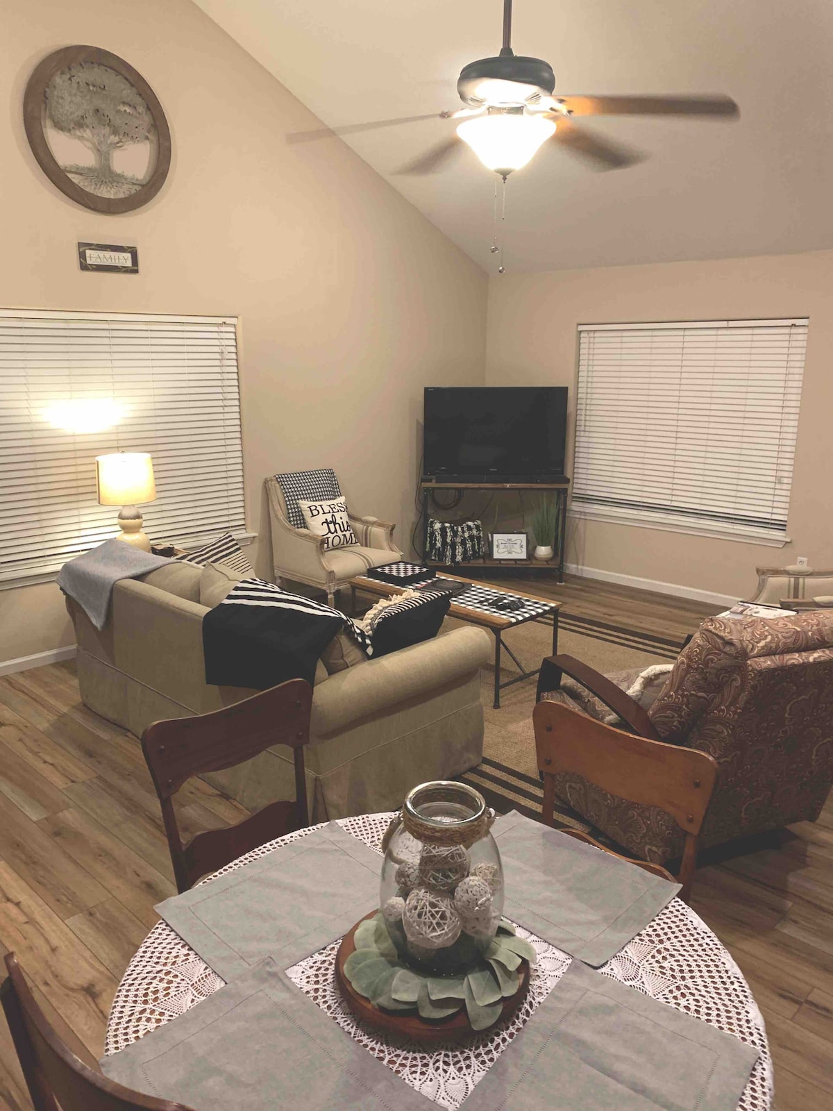 Greitas Wi-Fi, draugiškas augintiniams. Netoli puikių restoranų, alaus daryklos čiaupų kambarių, prekybos centrų, parkų ir tarpvalstybinių miestų. Šiame dviaukščio namo antrame aukšte yra visiškai aptvertas kiemas (bendra erdvė abiems skyriams) su propano kepsnine ir laužaviete. Nedidelis žolės plotas, kad augintiniai galėtų užsiimti savo verslu. (Prašome pasiimti kasdien) viršutiniame aukšte esantis balkonas yra privatus. Labai efektyvus ir tylus kintamosios srovės/šildymas. Televizoriai turi Roku paslaugą. Viduje draudžiama rūkyti vaping.