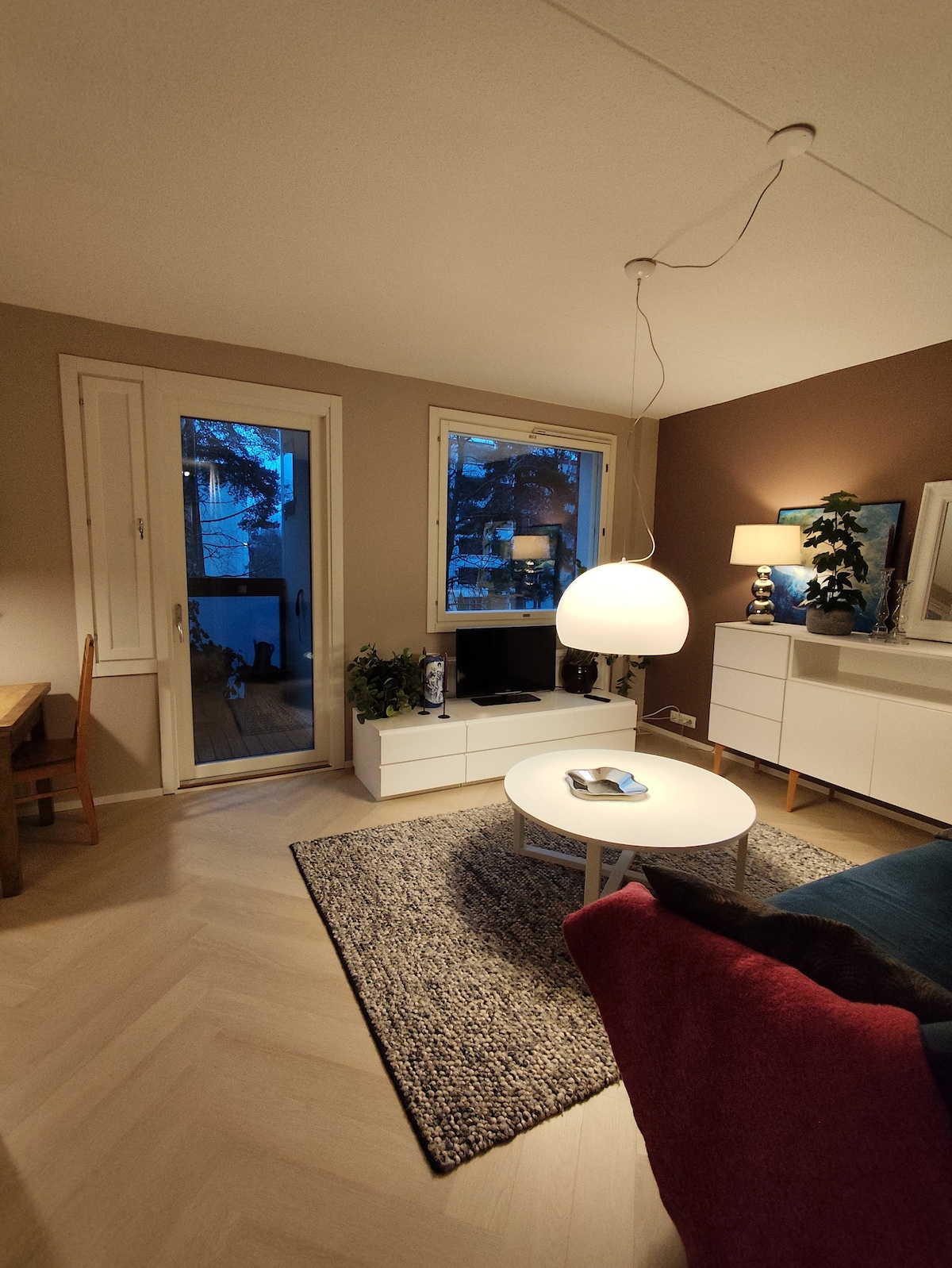 Labai funkcionalus ir pilnai įrengtas butas, esantis gražioje žaliojoje zonoje tarp centro ir oro uosto. Tai ideali vieta trumpalaikei ar ilgesnei viešnagei Helsinkyje. Graži atmosfera ir kokybė, kurią vadinu pagrindiniu pliusu. Bute yra praktiškas grindų planas, kurio kiekviename gale yra svetainė ir miegamasis, o viduryje - virtuvė, salė ir vonios kambarys. Įsikūręs netoli traukinio (10 min.), autobusų stotelių (2 min.) ir visą parą veikiančių maisto parduotuvių. Nemokama automobilių stovėjimo aikštelė!