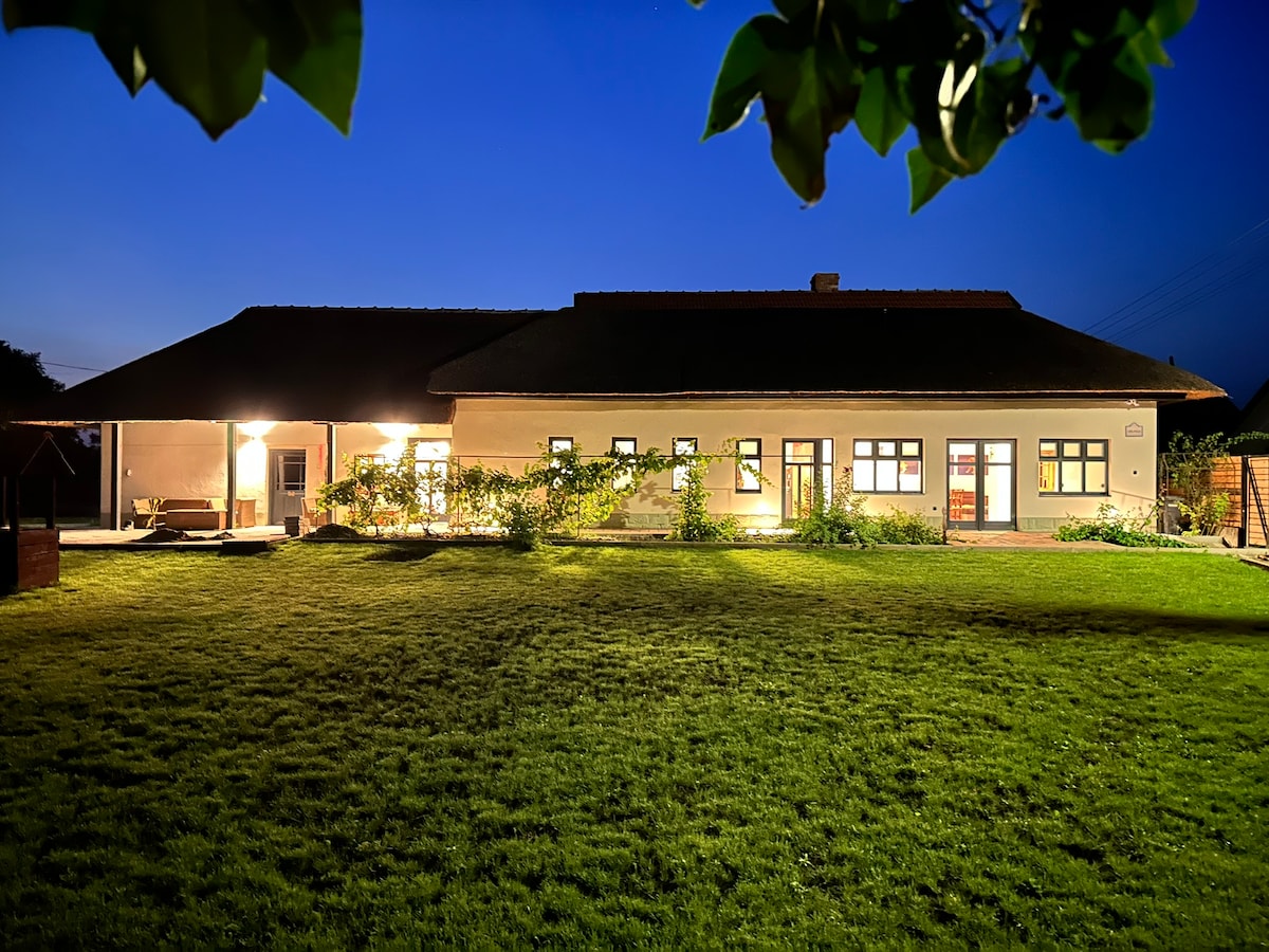 Atsipalaiduokite ir atsipalaiduokite autentiškame Vengrijos kaime šiuose stilinguose atostogų namuose. Mes įdėjome daug pastangų į dizainą, kad sukurtume jums jaukią, šiltą ir prabangią atmosferą viduje ir išorėje. Svajingas baseinas erdviame sode leidžia atsipalaiduoti karštomis vasaros dienomis, baseino namas yra puiki vieta jaukiems vakarams po žvaigždėmis, o namas su dviem miegamaisiais, vonios kambariu, virtuve ir svetaine visiškai atrodys kaip jūsų namai - toli nuo namų.