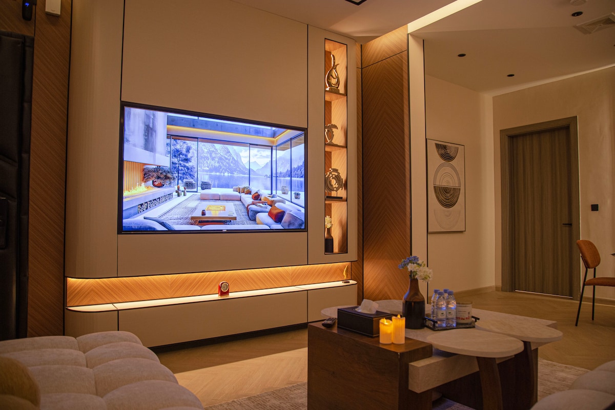 غرفة وصالة، تجربة أنيقة، دخول ذكي، شاشة 75 بوصة