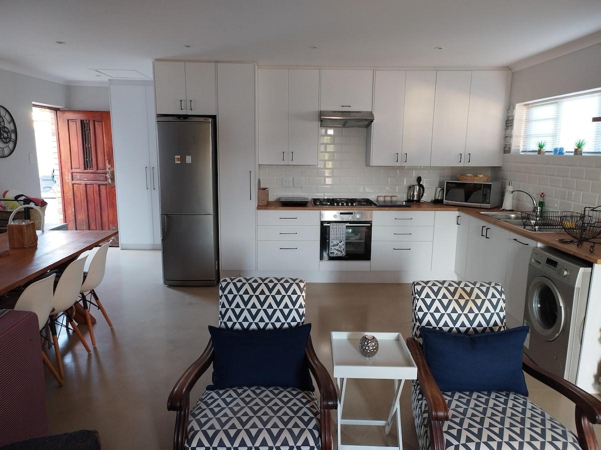 Jei norite būti netoli paplūdimio ir garsiųjų JBay banglenčių sporto vietų, šis 45 kv. m pirmame aukšte esantis kotedžas yra puikus pabėgimas. Kotedžas yra nuosavybės gale, atskiras įėjimas. Jame yra didelis miegamasis su vonios kambariu (dušu), virtuvėle, poilsio sale ir privačia lauko erdve su laužaviete / braai zona. Iki gražaus, ramaus paplūdimio vos už 2 minučių kelio pėsčiomis. Netoli Albatroso ir Žemutinio taško. Yra vieta pasistatyti automobilį. Priimami 2 maži šunys su augintiniais
