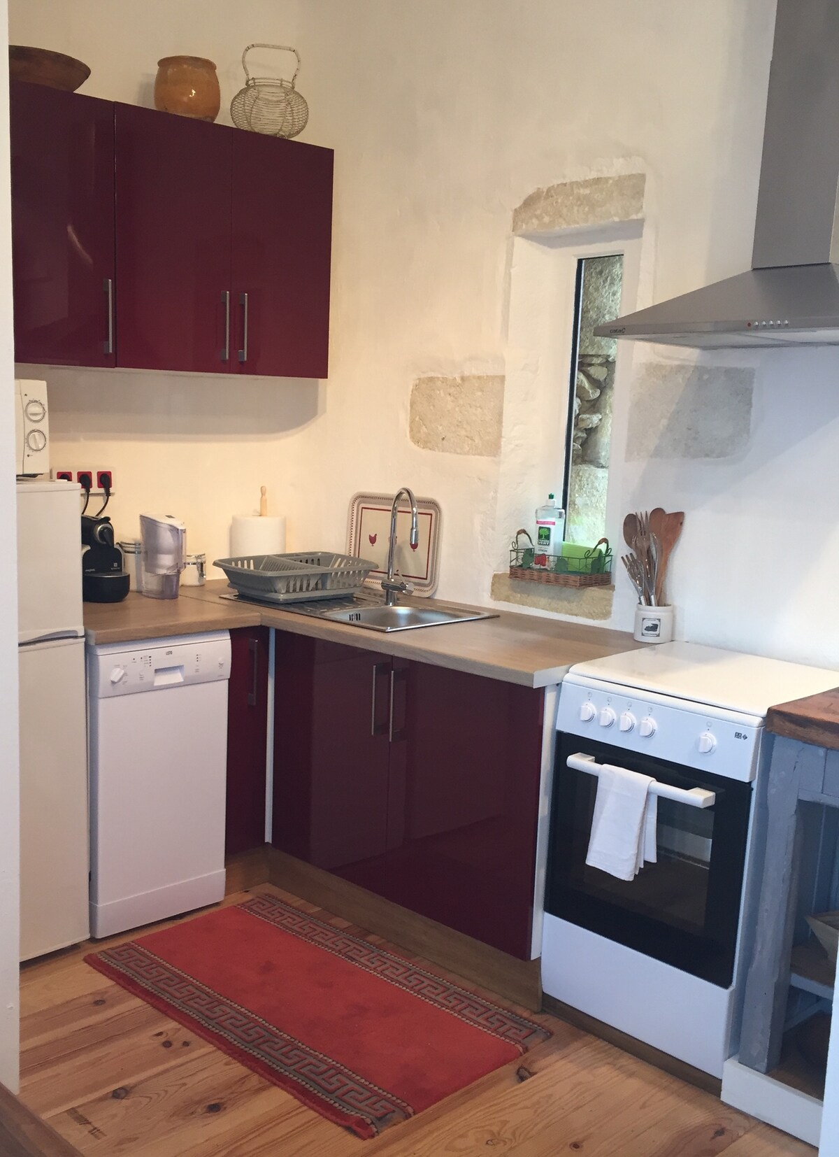 Akmeninis miesto namas, idealiai įsikūręs mažo dinamiško kaimo širdyje. Trumpas pėsčiomis iki visų parduotuvių Pirmame aukšte su pilnai įrengta virtuve (8,5m ²), atvira 37m ² svetaine su kokybiška sofa-lova. Pirmame aukšte yra tualetas, vonios kambarys (vonia ir įėjimas į dušą) bei du miegamieji. Antrame aukšte yra didelis mansardinis kambarys su oro kondicionieriais. Patalynė ir rankšluostis neprivaloma (+10 €/Miegamasis)