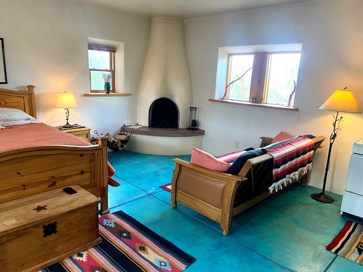 Man PATINKA dalytis savo tikrai stebuklinga nuosavybe su svečiais, ir aš įdėjau tiek daug meilės į šį žavingą namelį! Jis yra ant Turquoise Trail, kvapą gniaužiančio nacionalinio vaizdingo kelio. Įsikūrę 10 gražių akrų sklype su vaizdu į kalnus, būsite už 17 mylių nuo Santa Fė, už 2 mylių nuo žavingo Los Cerrillos kaimelio ir už 5 mylių nuo populiario meno kasybos miesto Madrido. Galite žygiuoti iškart už durų ir mėgautis neįtikėtinu žvaigždžių stebėjimu, nuostabiais saulėtekiais ir saulėlydžiais!